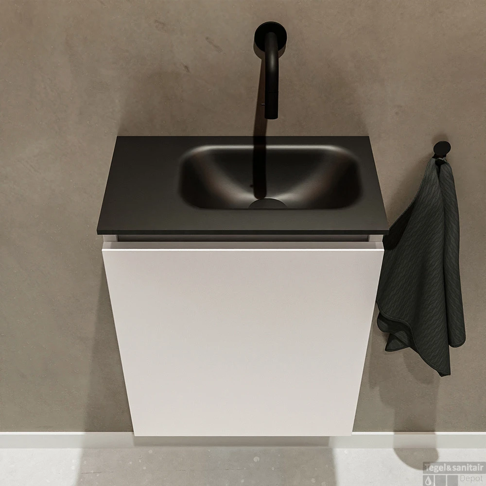 Moderniseer jouw toilet met dit toiletmeubel TURE! Het gaat hier om de vrijhangende onderkast TURE in 40cm breed met 1 deur in de kleur linen en een solid surface wastafel model EDEN in de kleur urban. De positie van de spoelbak is rechts zonder kraangat. In deze toiletmeubel serie hebben wij al meer dan 680 variaties samengesteld! Daarnaast is maatwerk mogelijk.
