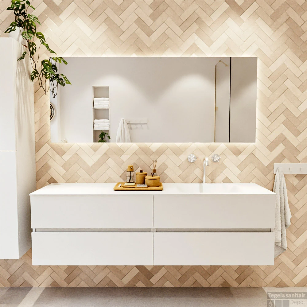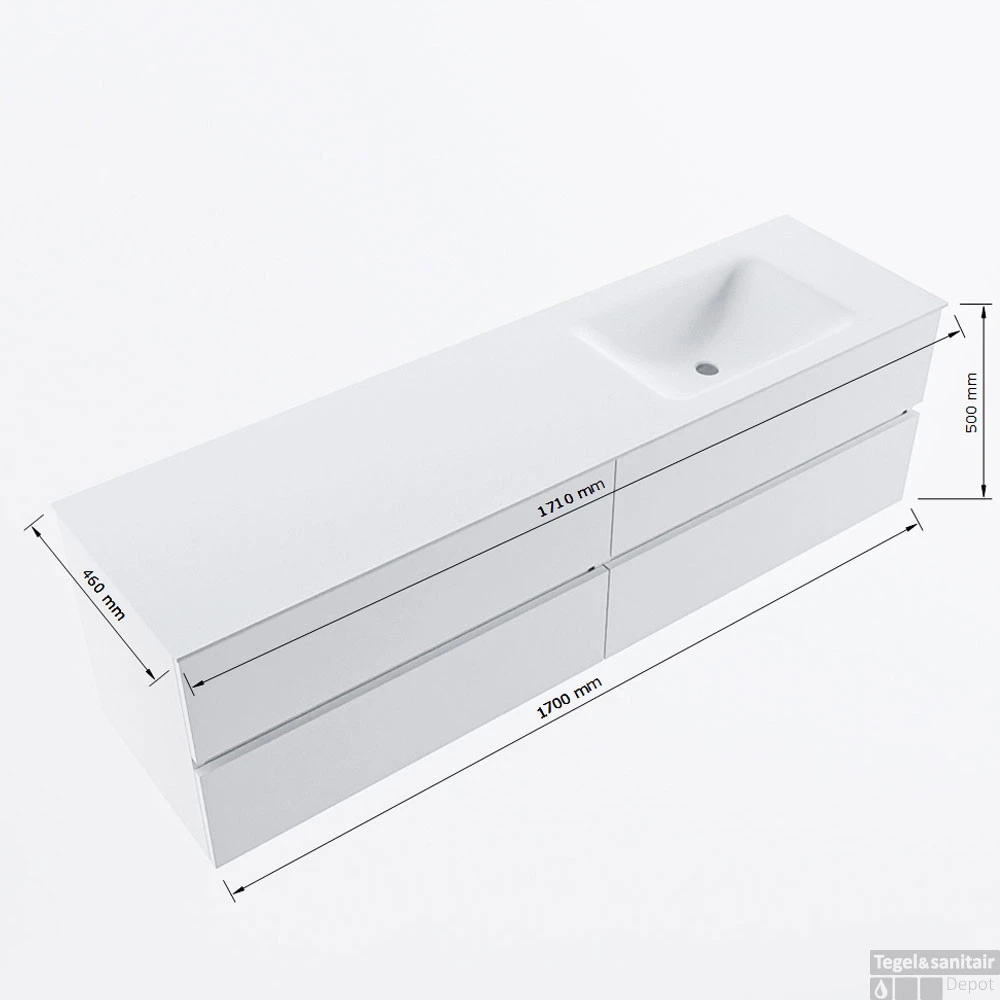 Of u kiest voor kleur of een houtlook, een speciale maat badmeubel, wel of geen kraangaten de badkamermeubel set Vica heeft het allemaal. U heeft bij de Vica badkamermeubel set de keuze uit 3 modellen wastafels de CLOUD en de MOON in Solid Surface met de opties de waskom rechts, links, midden of dubbel en wel of geen kraangaten. En de DENIA keramische wastafel met de opties midden en dubbel.