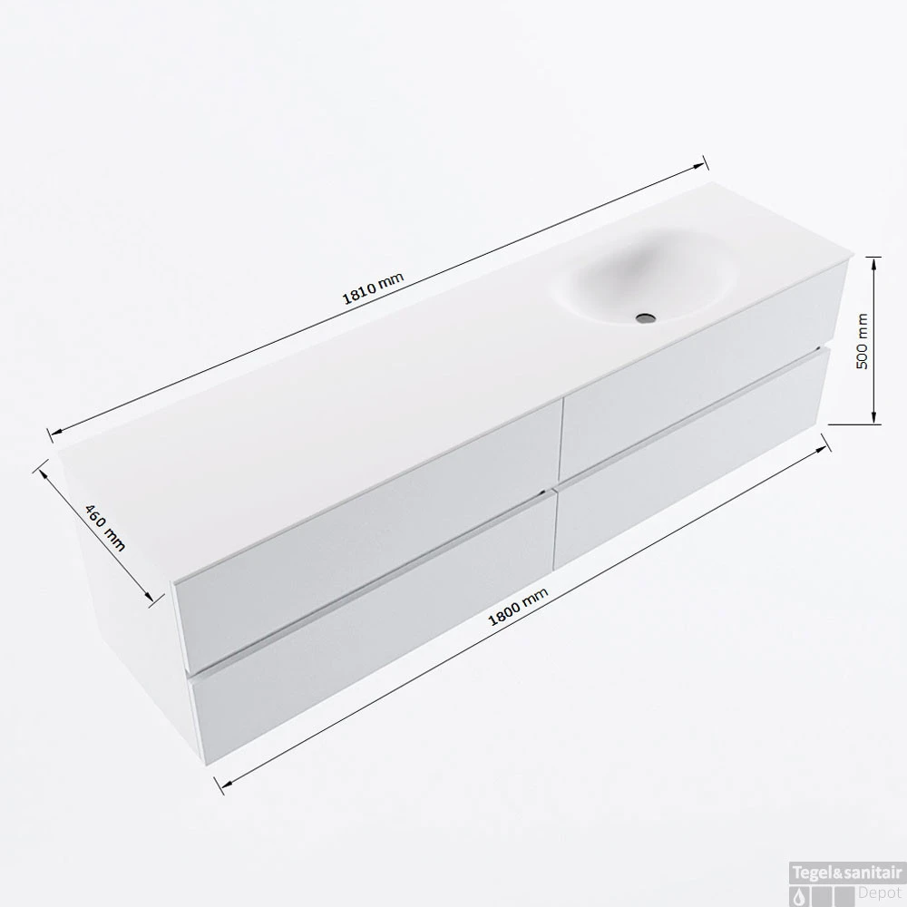 - Breedte wastafel: 181cm