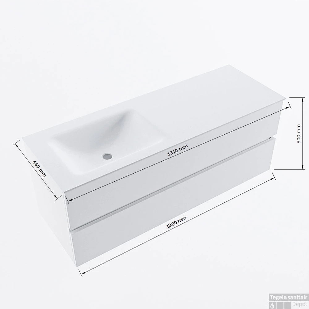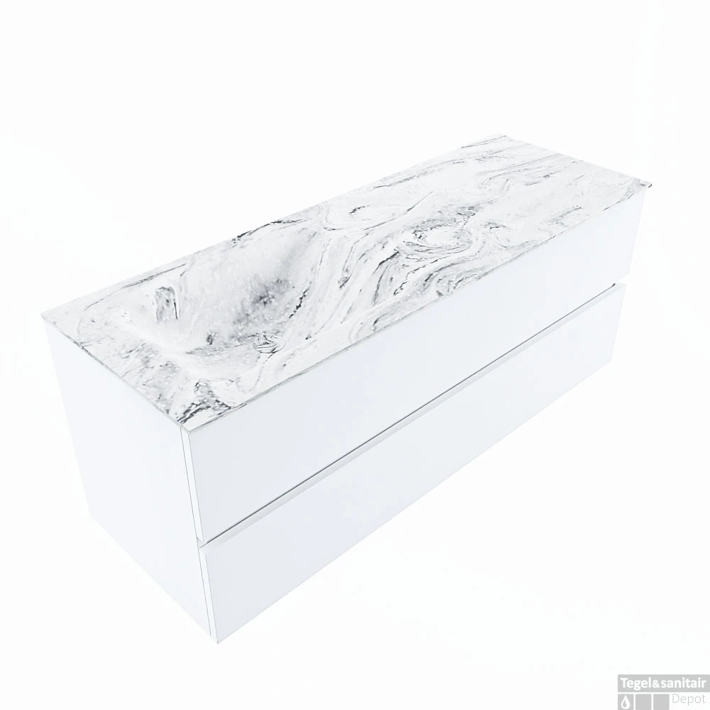 De buitengewone mooie badmeubel set VICA DLUX is een schitterend pronkstuk in uw badkamer. De gemarmerde Solid Surface wastafel van CORIAN heeft een fraaie en tijdloze uitstraling. Door de zachte en natuurlijke vorm van de wastafel, gecombineerd met de tijdloze en prachtige badmeubel onderkast past de VICA-DLUX goed bij de diverse stijlen badkamers. Om uw badkamer compleet te af te stijlen hebben wij ook de nissen en spiegelhouders in dezelfde kleur als de wastafel. Zoals de nissen en spiegel planchetten. De serie VICA DLUX bestaat uit de 2 of 4 laden onderkast VICA gecombineerd met een CORIAN Solid Surface wastafel met marmer structuur. De Solid Surface CORIAN wastafel is in 5 marmer looks verkrijgbaar. Met deze badkamermeubel set heeft u wel die mooie marmeren uitstraling maar tevens ook het gemak en de hygiëne van Solid Surface.
