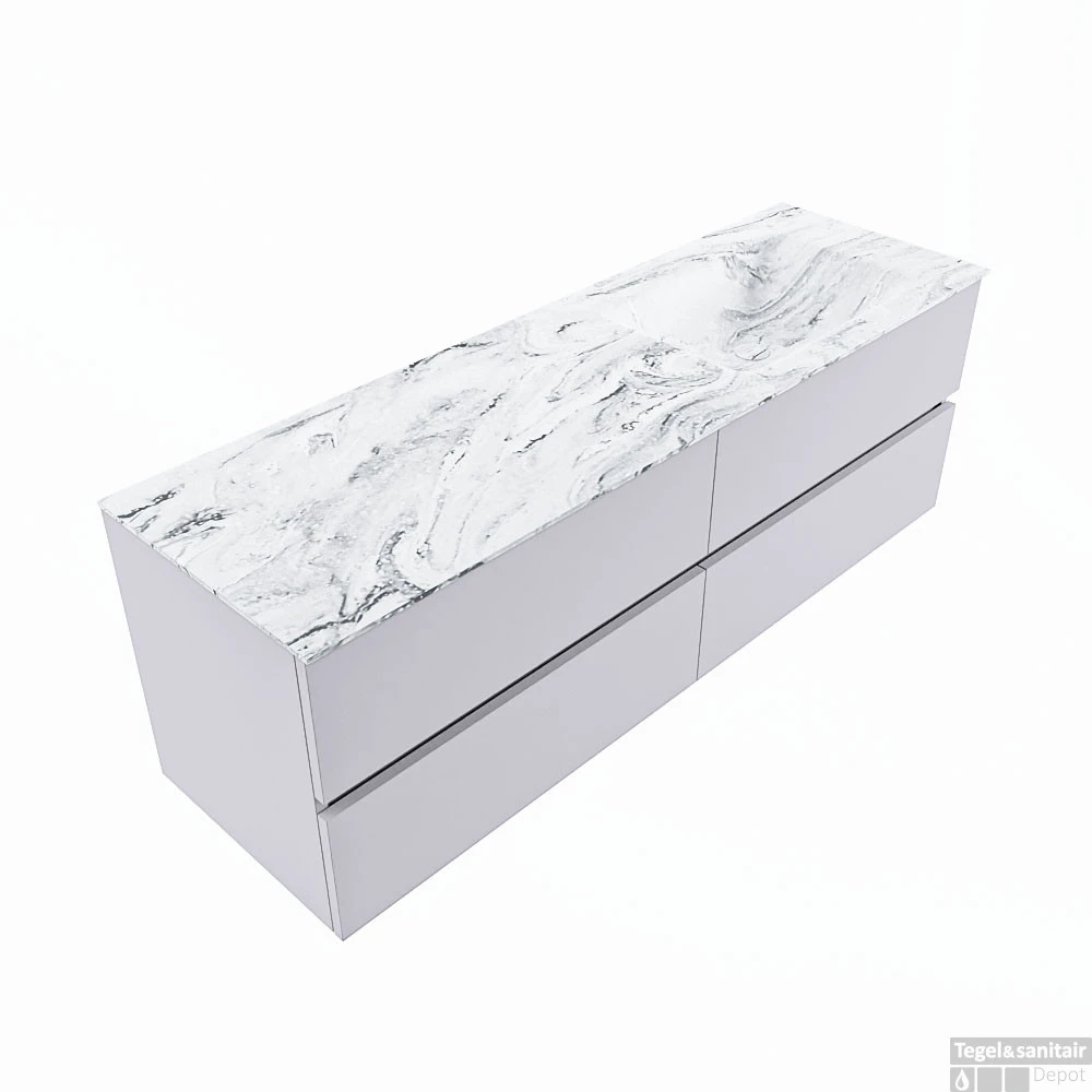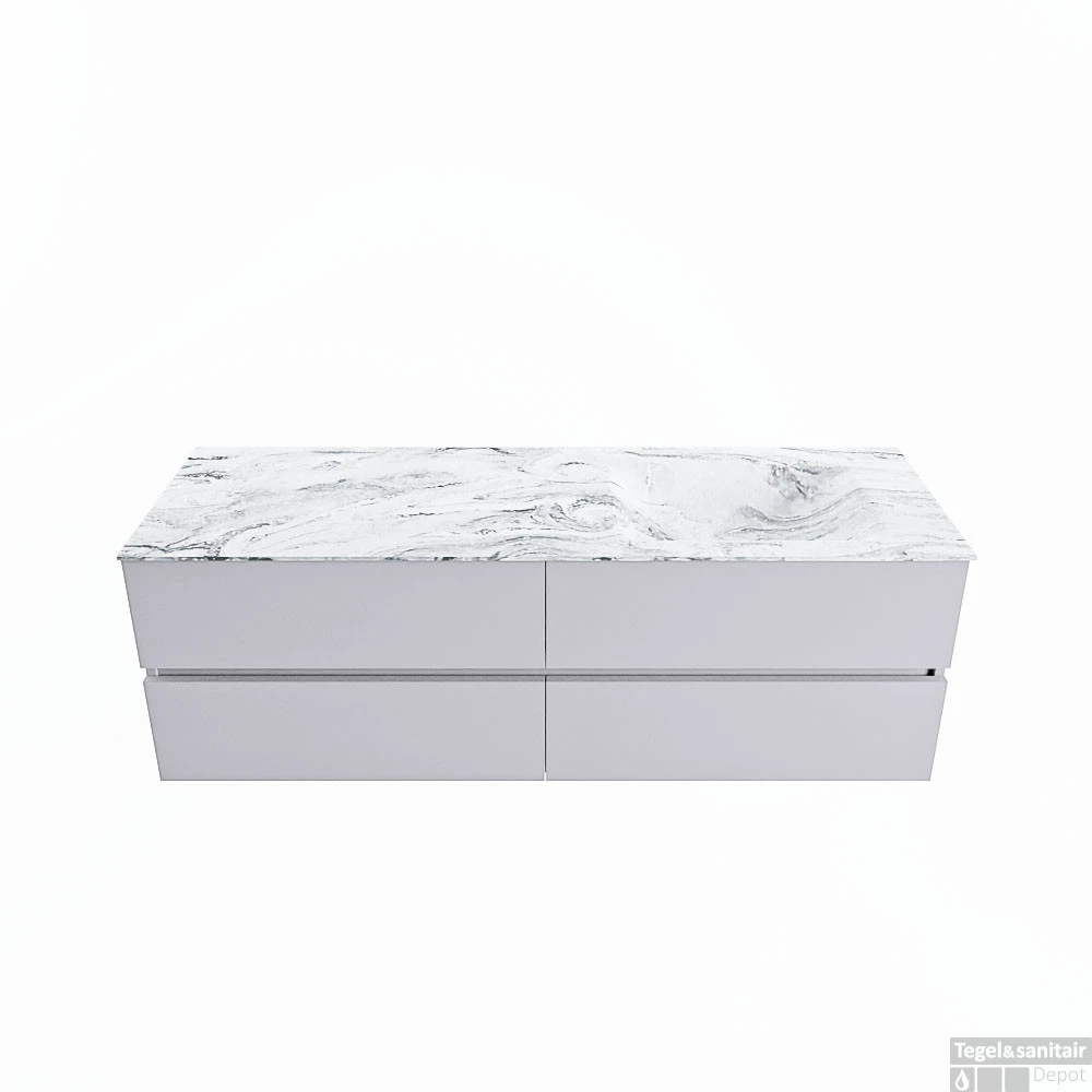 De buitengewone mooie badmeubel set VICA DLUX is een schitterend pronkstuk in uw badkamer. De gemarmerde Solid Surface wastafel van CORIAN heeft een fraaie en tijdloze uitstraling. Door de zachte en natuurlijke vorm van de wastafel, gecombineerd met de tijdloze en prachtige badmeubel onderkast past de VICA-DLUX goed bij de diverse stijlen badkamers. Om uw badkamer compleet te af te stijlen hebben wij ook de nissen en spiegelhouders in dezelfde kleur als de wastafel. Zoals de nissen en spiegel planchetten. De serie VICA DLUX bestaat uit de 2 of 4 laden onderkast VICA gecombineerd met een CORIAN Solid Surface wastafel met marmer structuur. De Solid Surface CORIAN wastafel is in 5 marmer looks verkrijgbaar. Met deze badkamermeubel set heeft u wel die mooie marmeren uitstraling maar tevens ook het gemak en de hygiëne van Solid Surface.