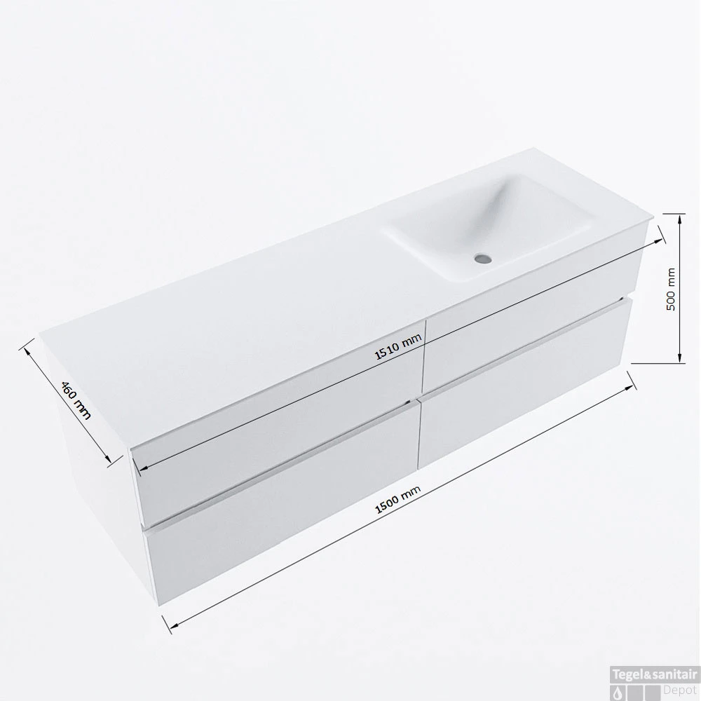 - Breedte wastafel: 151cm