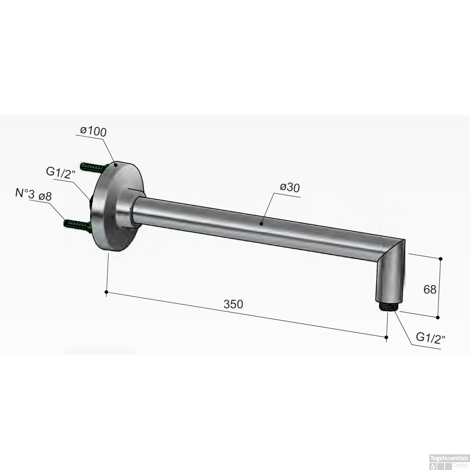 Met deze muuruitloop kunt u een luxe uitstraling aan uw badkamer geven. U kunt hiermee uw douchekop aan de muur verbinden en hiermee dus aan de leiding voor uw regendouche. De wandarm is gemaakt van verchroomd messing en is 35 cm lang. Dit model is verzwaard en zal een extra robuuste uitstraling geven aan uw badkamer.
