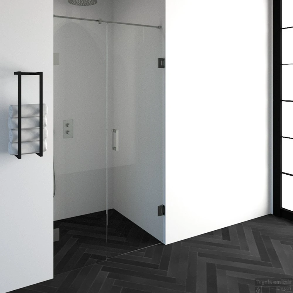 Deze complete nisdeur bestaat uit een inloopwand en draaideur met RVS beslag. Inclusief glasbehandeling en optionele kunststof profielen. De hoogte is 200 cm. Deze nisdeur straalt luxe uit door zijn design en kleur.