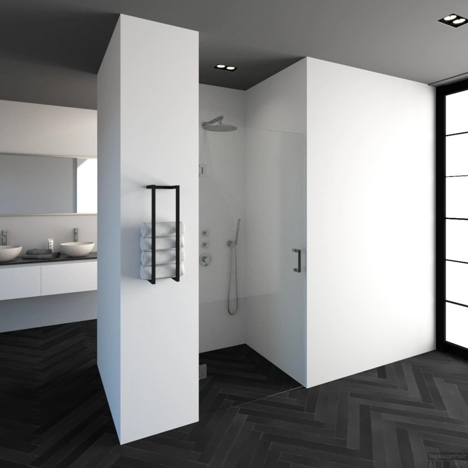Deze complete nisdeur bestaat uit een draaideur met RVS beslag. Inclusief glasbehandeling en optionele kunststof profielen. De hoogte is 200 cm. Deze nisdeur straalt luxe uit door zijn design en kleur.