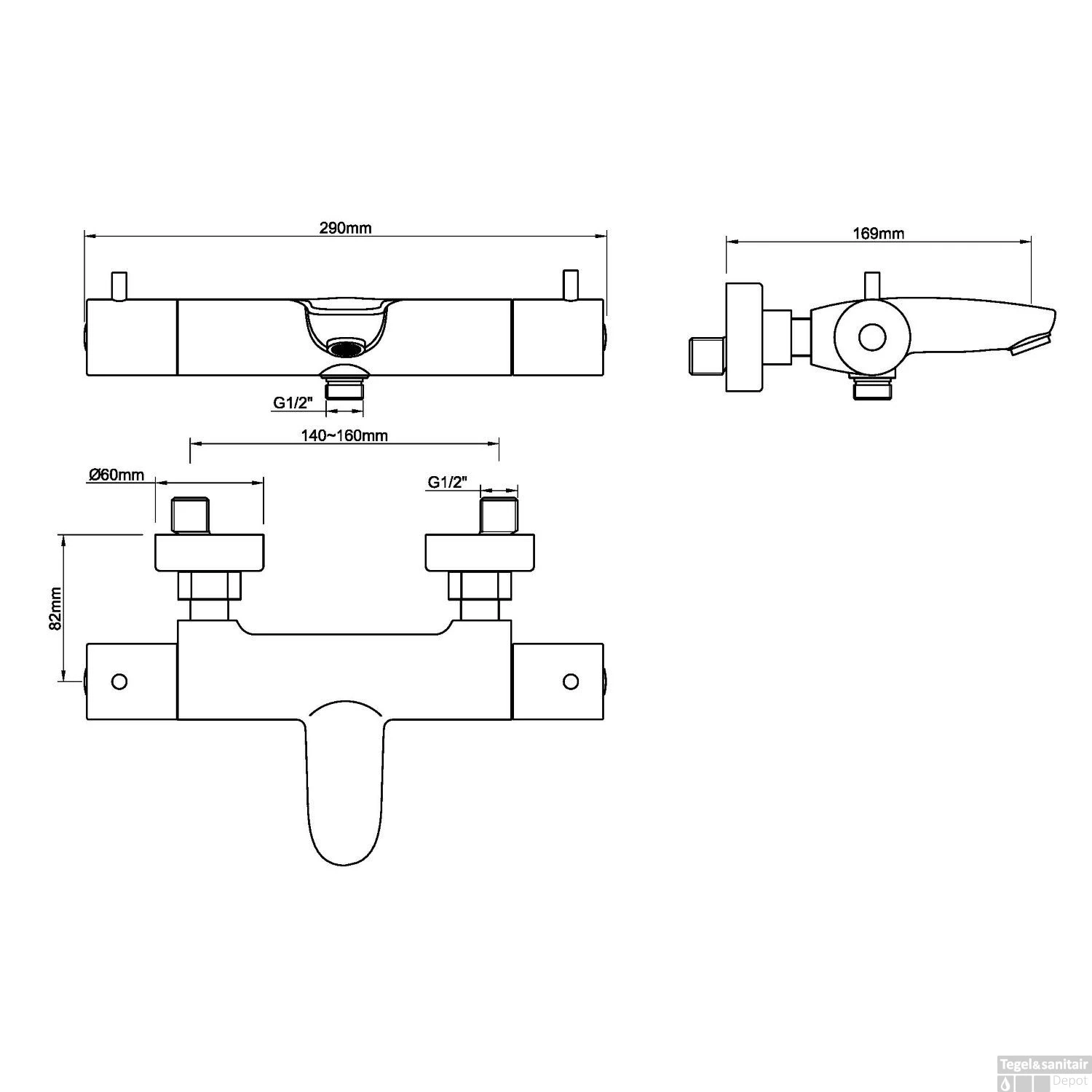 Specificaties Opbouw Badkraan Boss & Wessing Cemal Thermostatisch Geborsteld Koper: