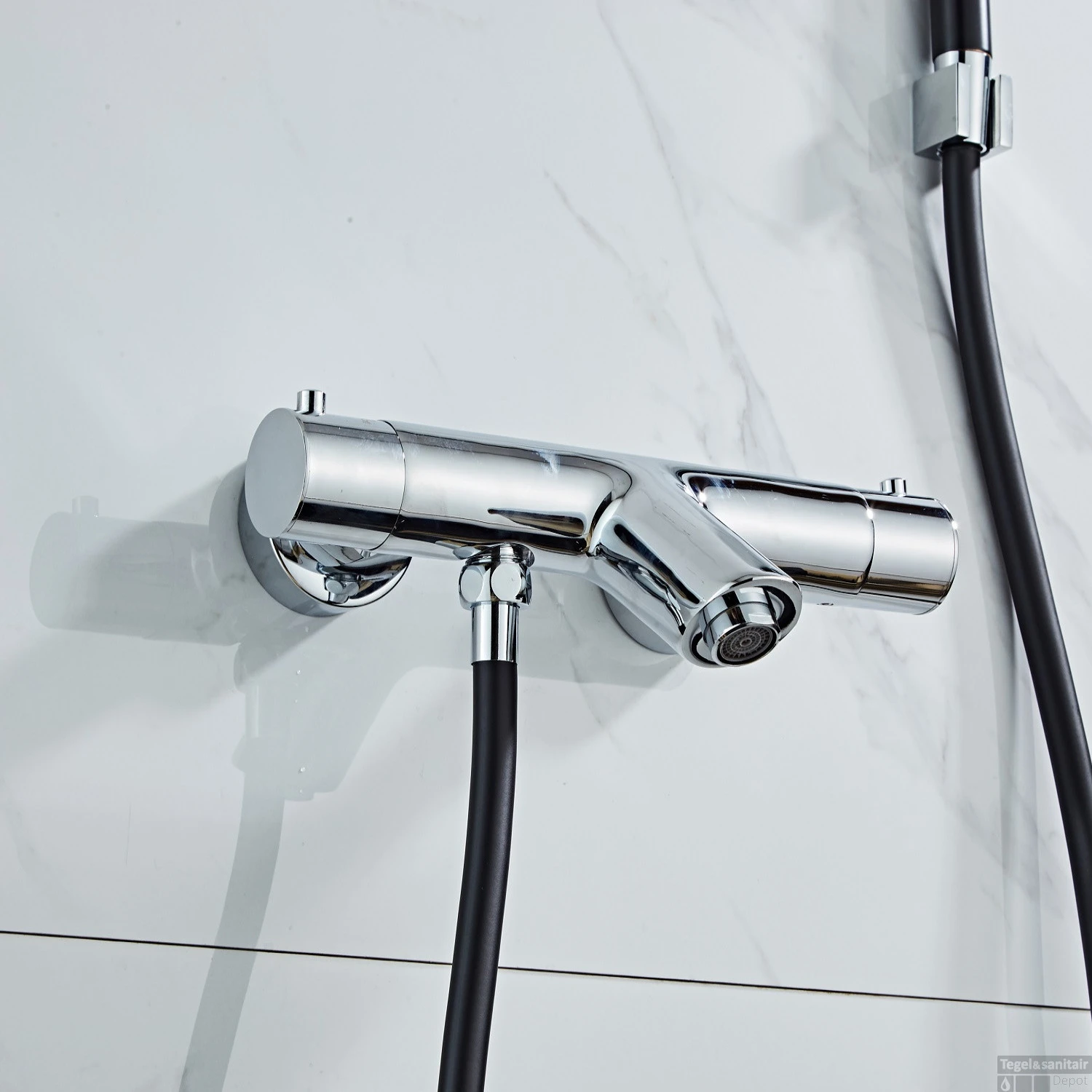 Opbouw Badkraan Boss & Wessing Talpa Pro Thermostatisch met Mat Zwarte Handdoucheset