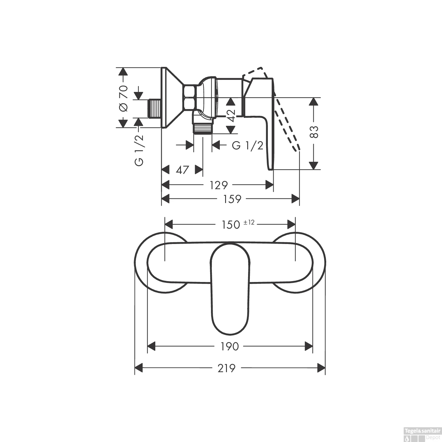 Specificaties Opbouw Douchekraan HansGrohe Vernis Blend Eengreeps Mat Zwart: