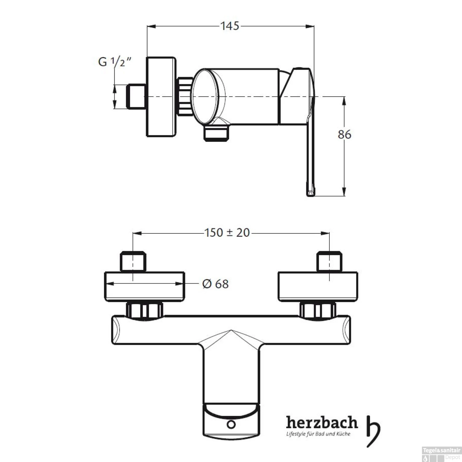 Specificaties Opbouw Douchekraan Herzbach Cool met Temperatuurbegrenzer:
