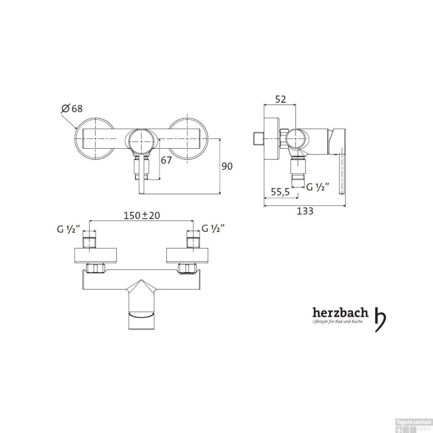 Specificaties Opbouw Douchemengkraan Herzbach Design New: