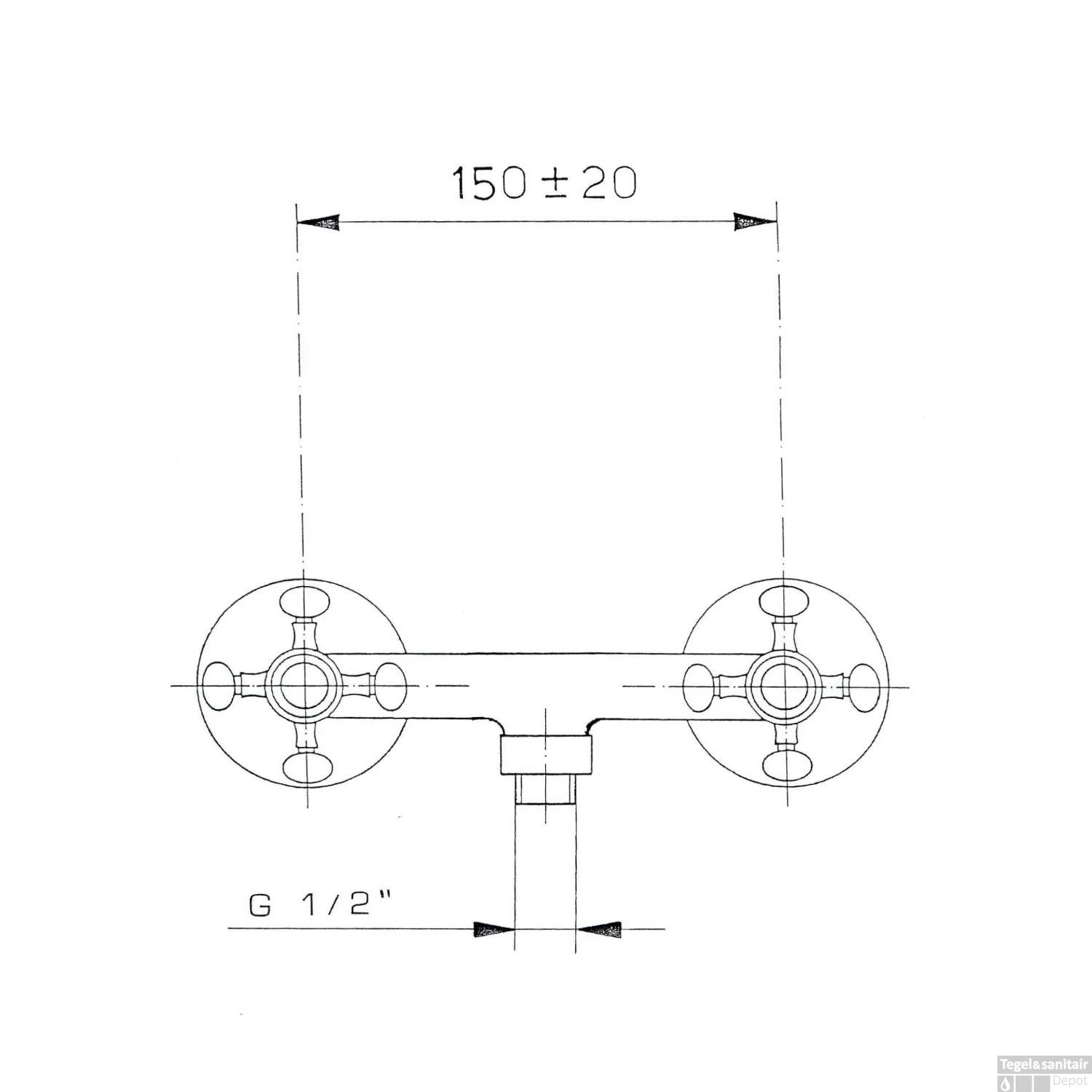 Specificaties Opbouw Douchekraan Mengkraan 2-knop Klassiek Chroom / Goud Sapho Antea: