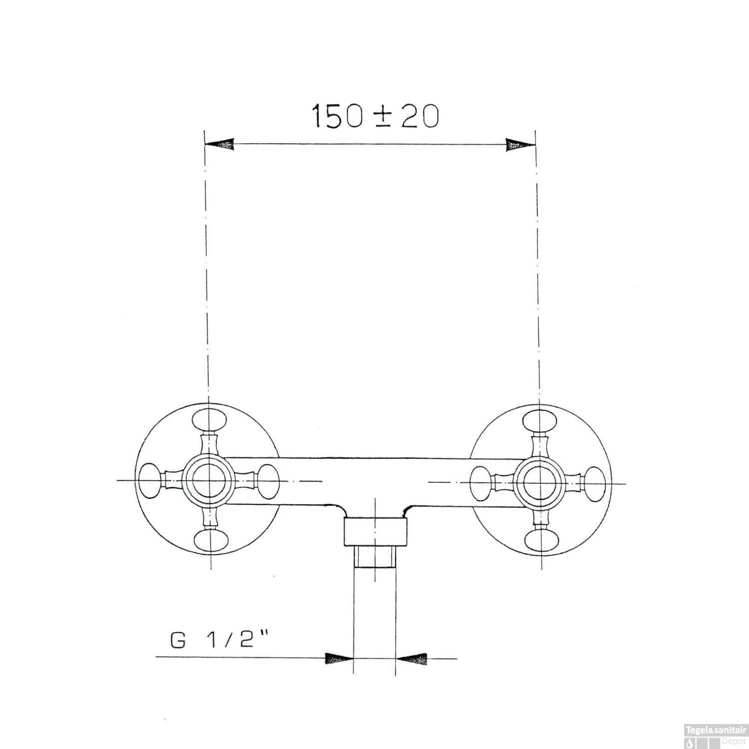 Specificaties Opbouw Douchekraan Mengkraan 2-knop Klassiek RVS Sapho Antea: