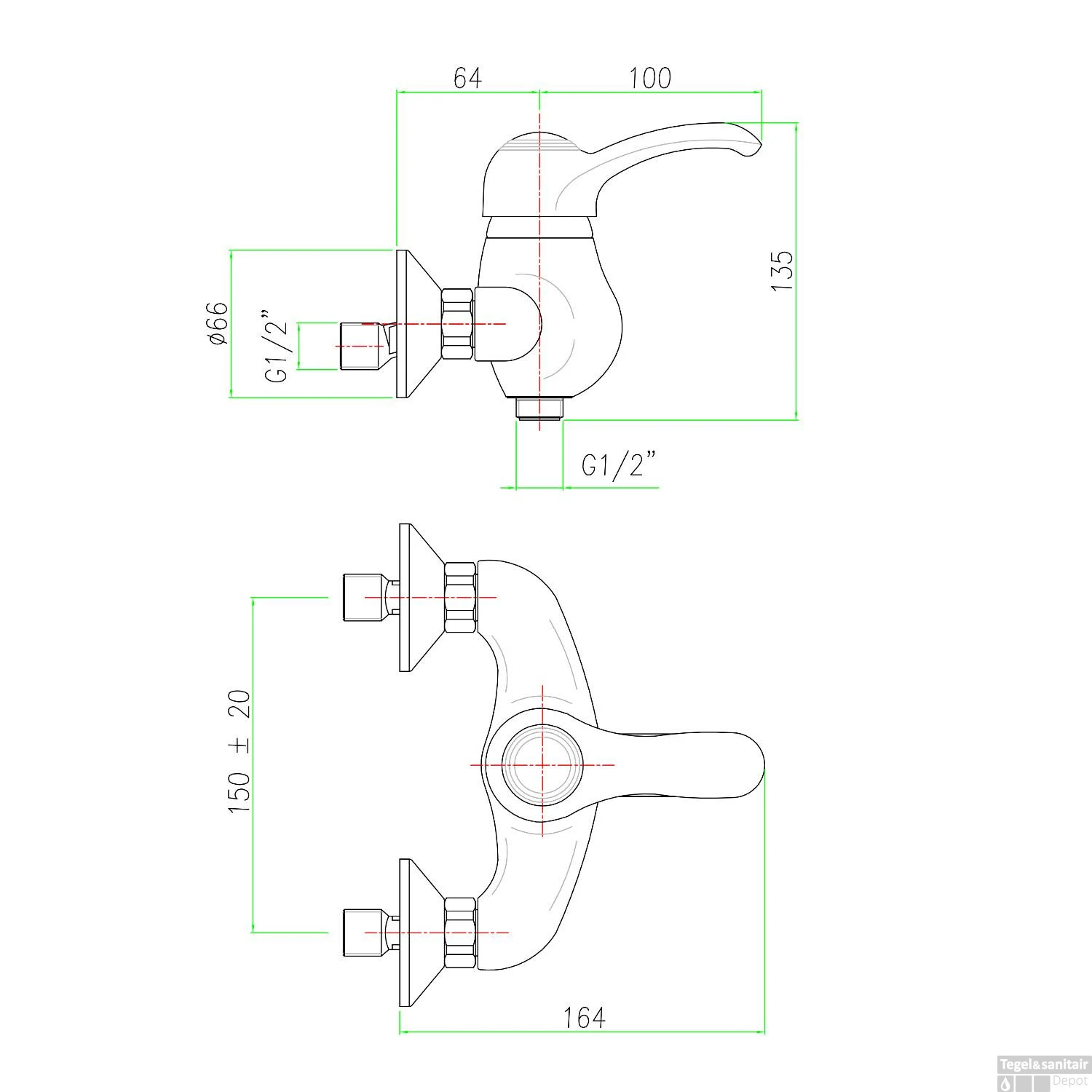 Specificaties Opbouw Douchekraan Mengkraan 1-hendel Chroom Sapho Kirké: