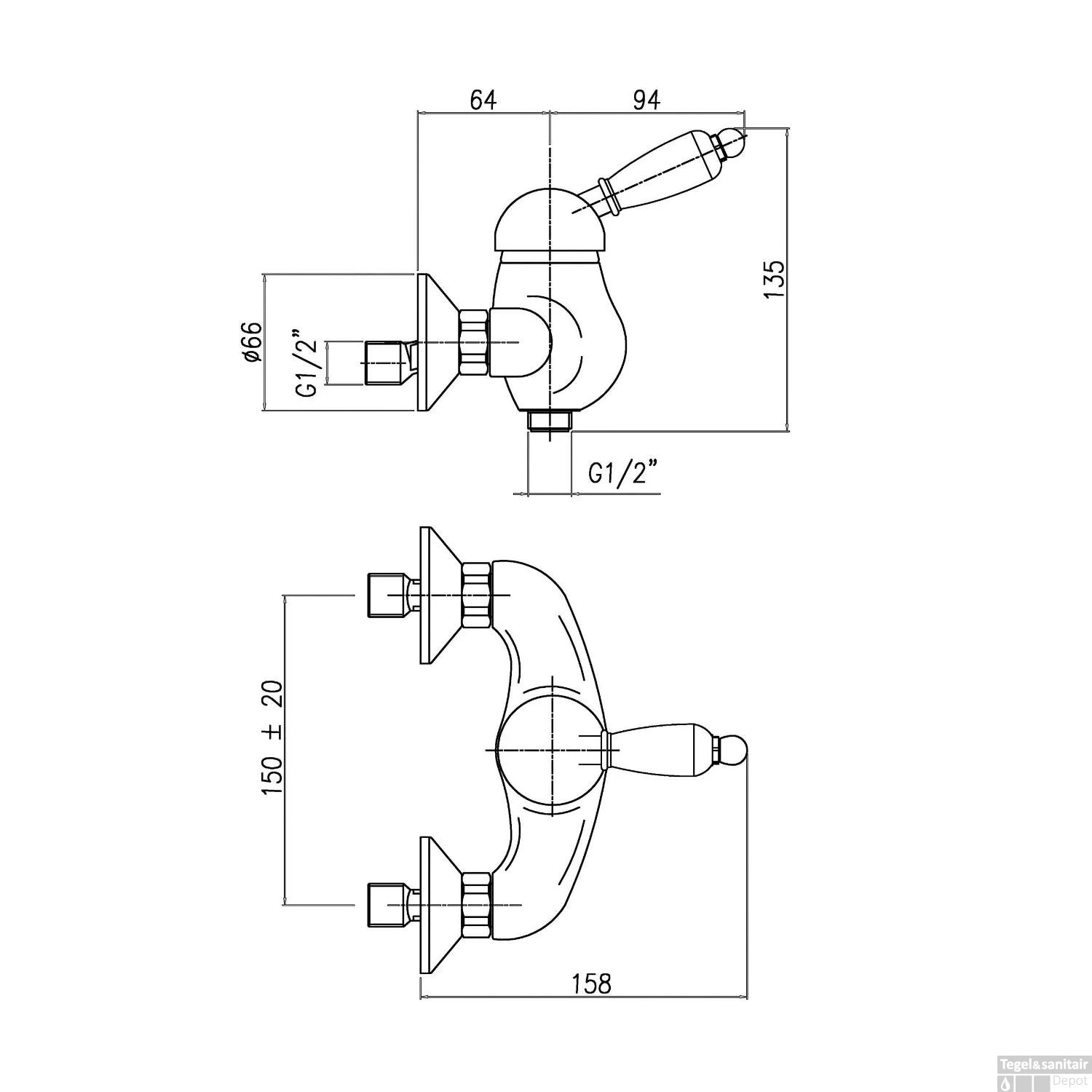 Specificaties Opbouw Douchekraan Mengkraan Retro Wit 1-hendel Goud Sapho Kirké: