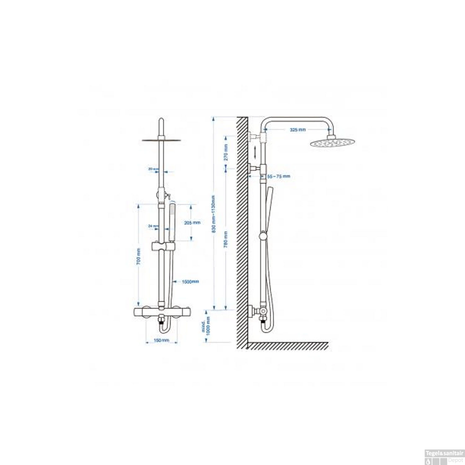 Specificaties Opbouw Regendoucheset Wiesbaden Caral-Eco Twenty Met Thermostaatkraan Chroom: