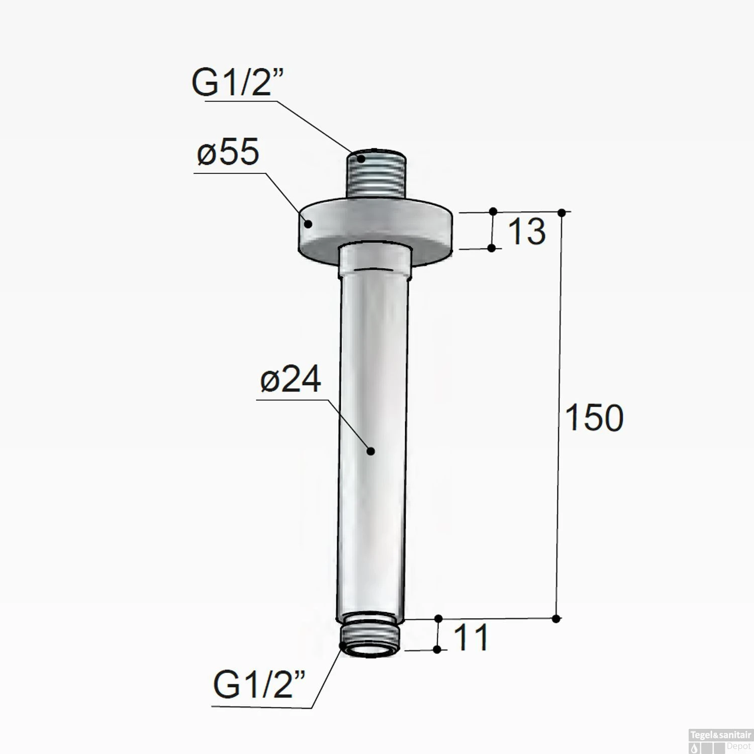 De Cobber serie van Hotbath kan worden omschreven als; ijzersterk, stijlvol en helemaal van deze tijd. De kranen zijn gemaakt van hoogwaardig messing materiaal waardoor u zo lang mogelijk kunt genieten van uw sanitair. Zo ook deze Plafondbuis van de Cobber serie van Hotbath. De uitloop heeft een lengte van 15 cm en een dikte van 2.4 cm. De aansluiting van de kraan is 1/2’’. Met deze uitloop, die deels in de plafond wordt geplaatst, creëert u een ruimtelijke sfeer. U kunt gaan voor een prachtige regen douchekop om het plaatje helemaal af te maken.