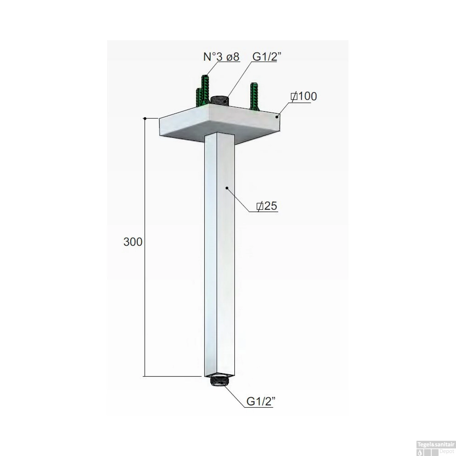 Specificaties Plafonduitloop Hotbath Mate 30 cm Vierkant Verzwaard Chroom