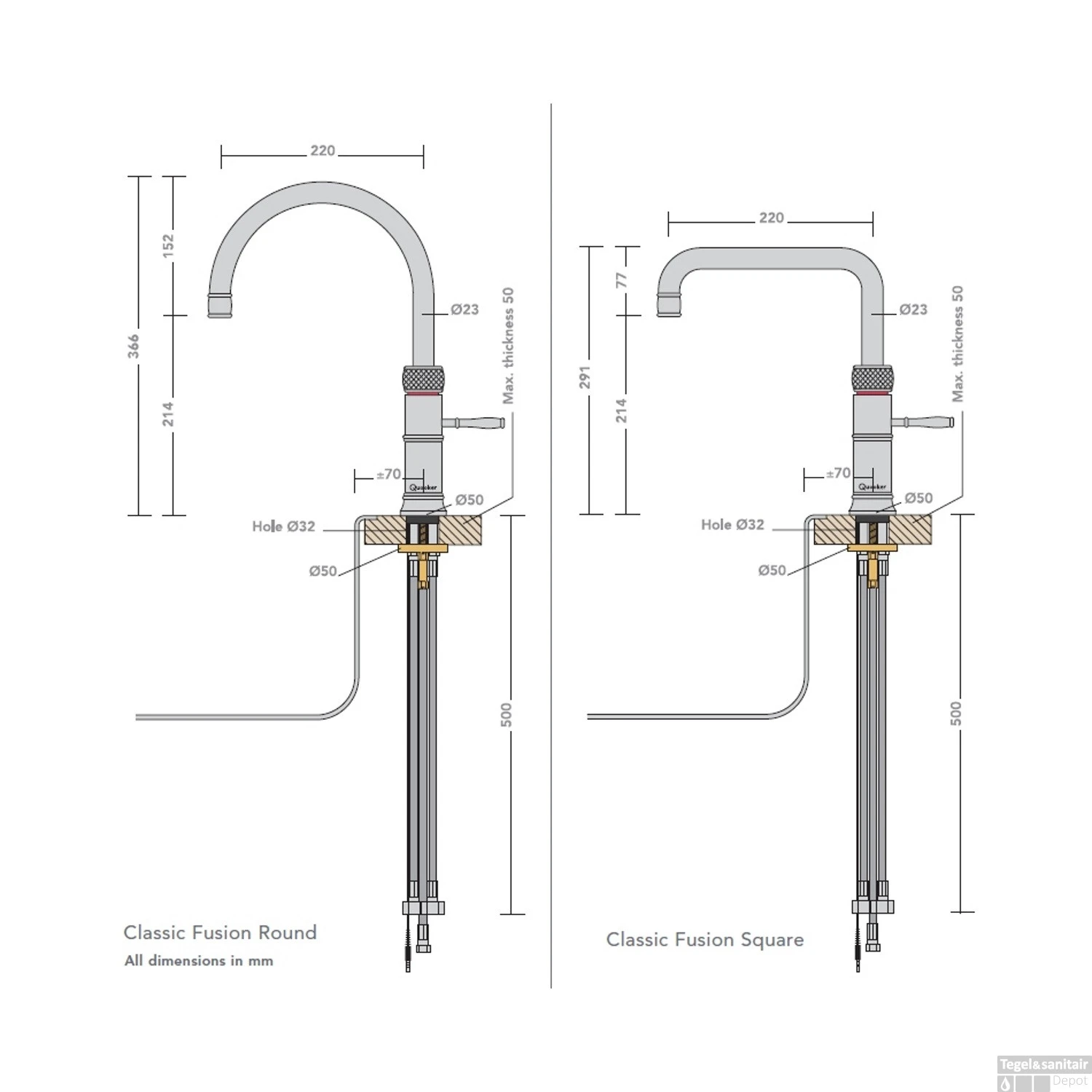 De kraan wordt zonder boiler geleverd, deze die u hierbij aan te schaffen. De Classic kraan is ook in een ronde variant verkrijgbaar (round) en met 3 afwerking (Chroom, RVS en Nikkel Glans)