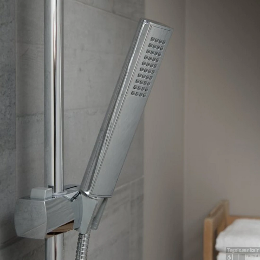 Tips: het is niet mogelijk om de handdouche te monteren op een andere glijstang dan de glijstang die bij deze set hoort. Ook adviseren wij om de artikelen uit deze doucheset schoon te maken met een niet-agressief schoonmaakmiddel: op deze manier behouden de artikelen de chromen kleur.