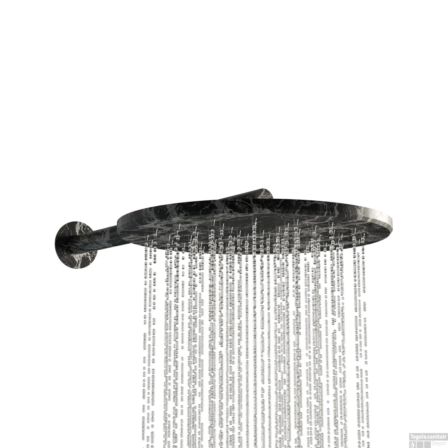 De douchekop is gemaakt van hoogwaardig RVS materiaal en gecoat met de bijzondere zwarte marmer afwerking. In deze afwerking zijn grijze nerven aangebracht. De bijpassende wandarm dient u apart bij te bestellen. Dit kunt u hieronder doen.