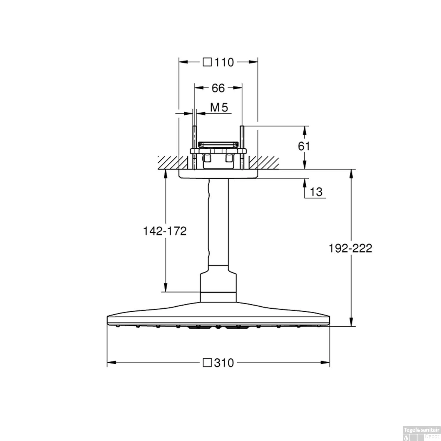De hoofddouche heeft een diameter van 31 cm en de plafondarm is 18.5 cm lang. Maak uw badkamer compleet met andere producten van Grohe in de kleur Warm Sunset Geborsteld.