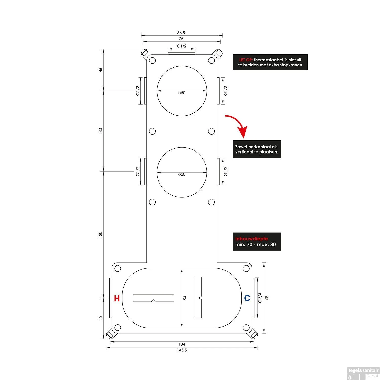 - Aansluiting stopkranen: 1/2
