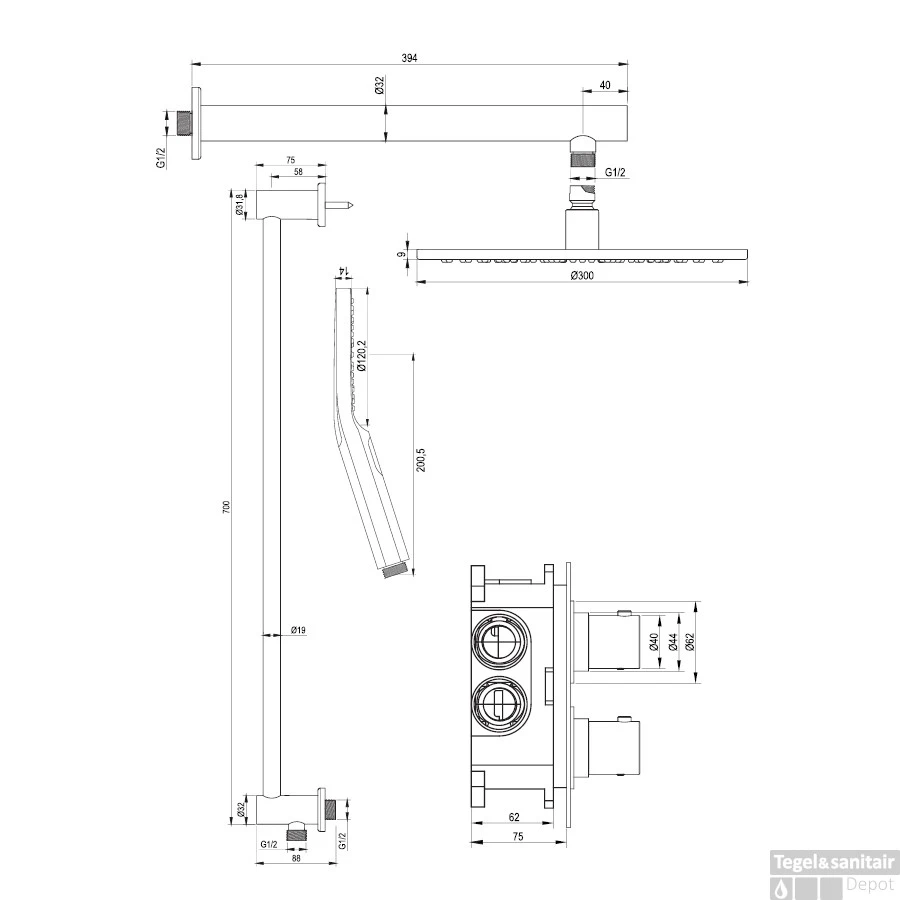 - Diameter regendouche: ⌀ 30 cm