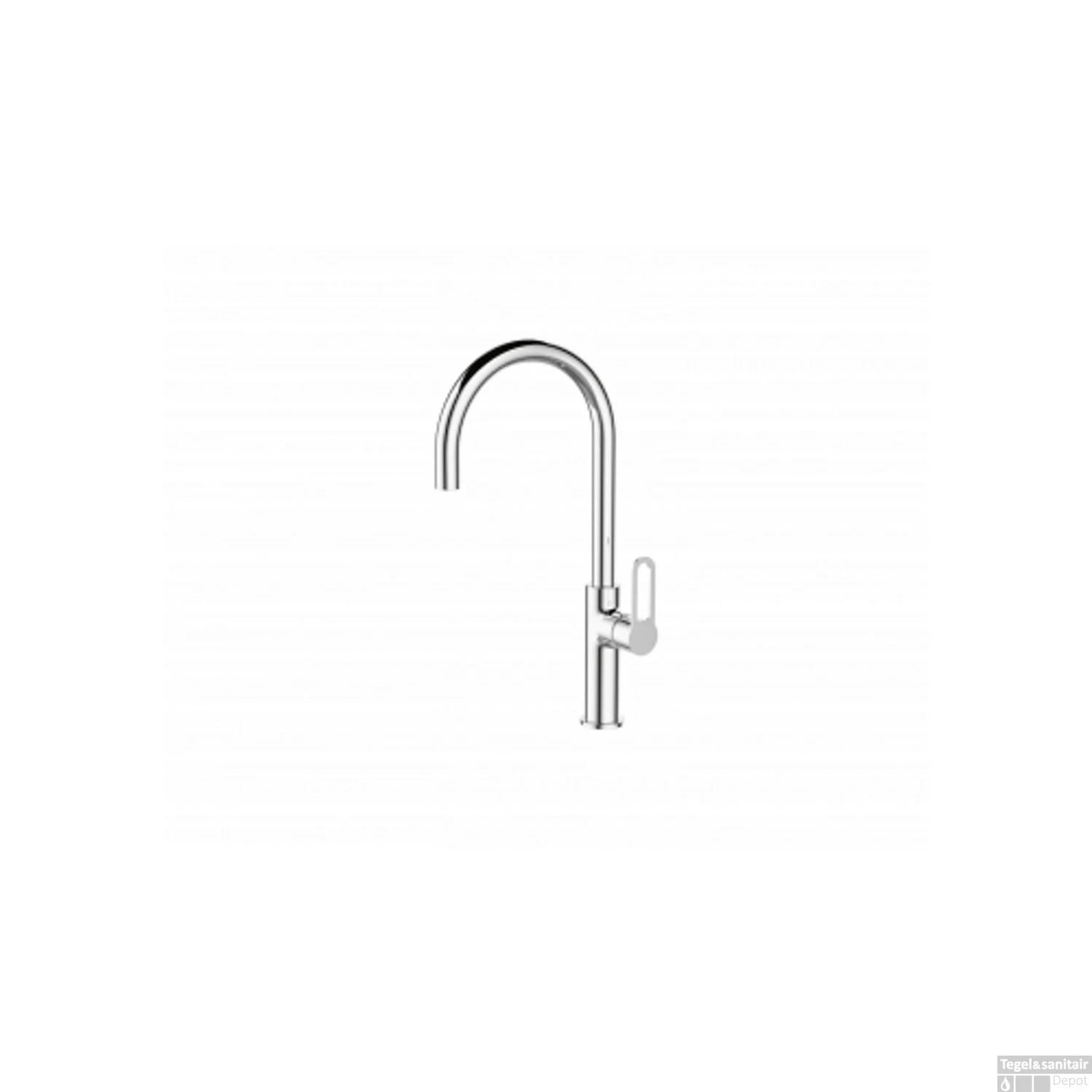 De keukenmengkraan van Sanimar uit de serie Palermo past met zijn eenvoudige vorm en chromen kleur perfect in iedere keuken. Door het simpele design zorgt de kraan voor een luxe uitstraling in de keuken. De keukenmengkraan is gemaakt van messing.