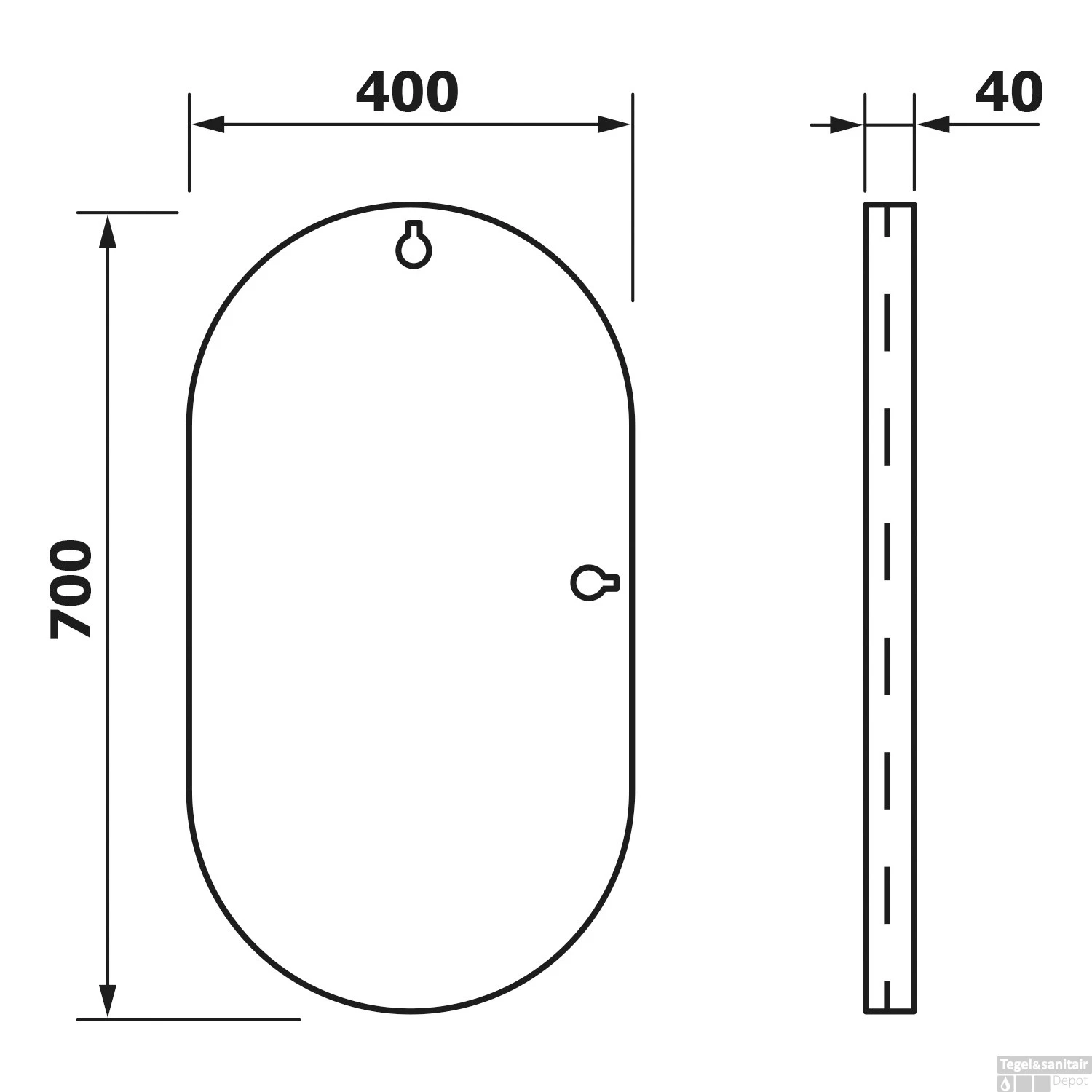 De hoogte van de spiegel is 70 cm. De spiegel is 40 cm breed. Daarnaast is de spiegel 4 cm diep. De rand van de spiegel is gemaakt van aluminium. Vanwege de dikte van het frame van deze spiegel, is uw spiegel geschikt voor spiegelverwarming. Spiegelverwarming is echter niet inbegrepen bij dit product.
