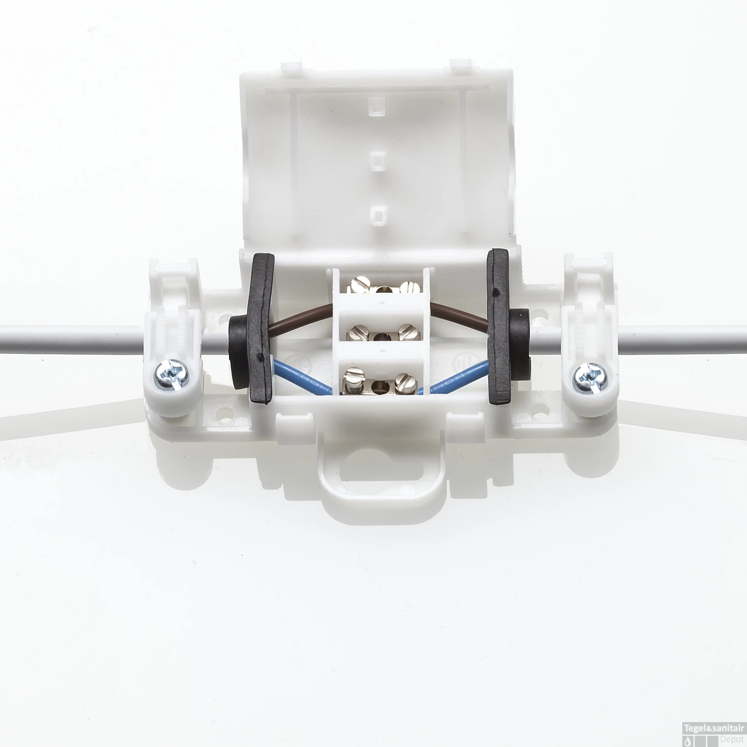 De Tiger LED-lamp Helena is een brede strak vormgegeven moderne designlamp. Door de breedte van de lamp is deze uitermate geschikt om boven de wastafelspiegel te hangen. De lamp kan op 2 manieren gemonteerd worden; zowel op het meubel als op de spiegel. De lamp is uitgevoerd in de kleur chroom. De lamp is voorzien van 13,8 watt LED verlichting met geïntegreerde transformator. De lichtkleur is 6100K.