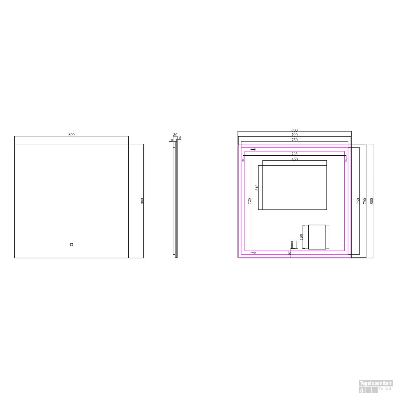 Specificaties Spiegel Wiesbaden Soul Vierkant met LED Verlichting Backlight 80 cm:
