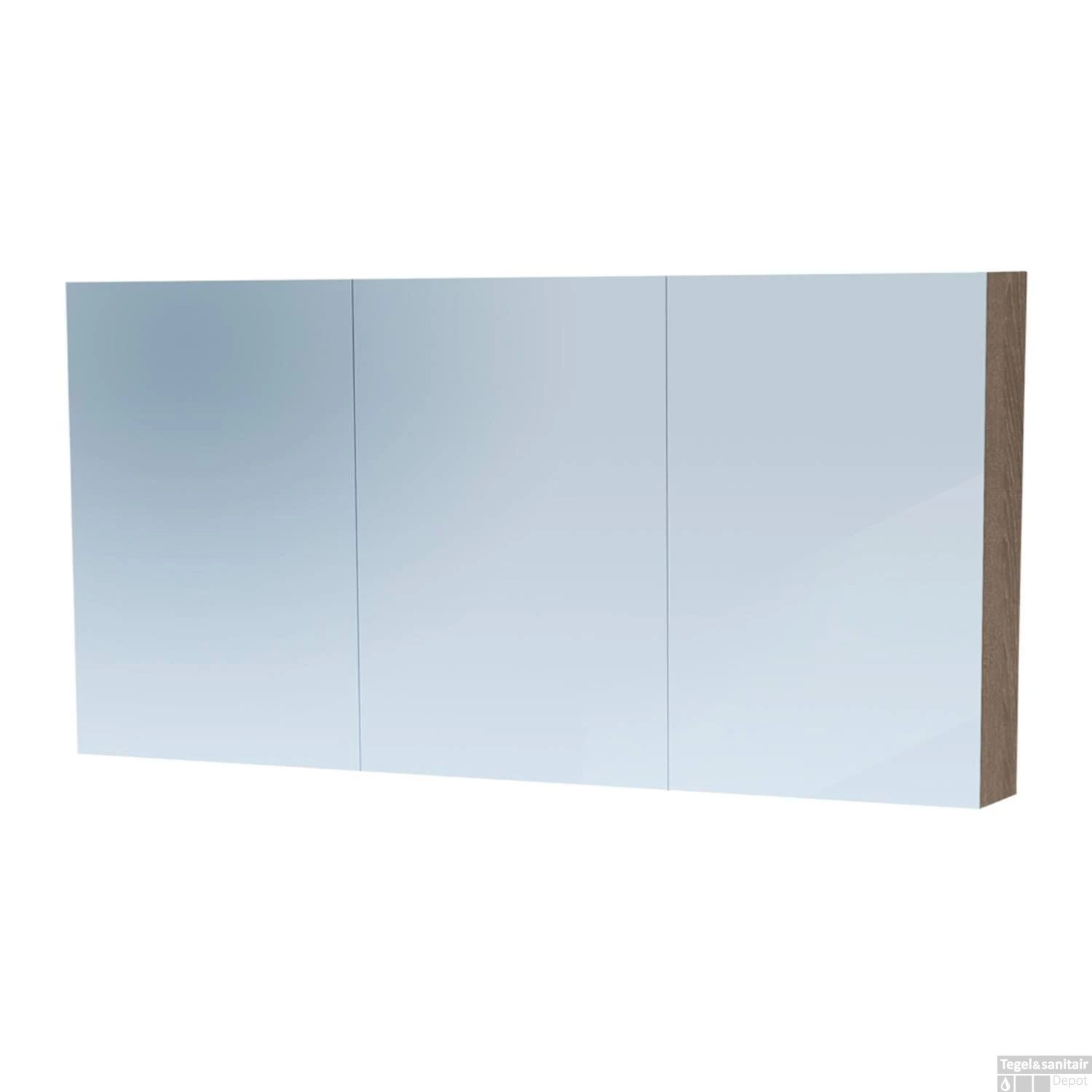 De spiegelkast is 139 cm breed, 70 cm hoog en 15 cm diep.