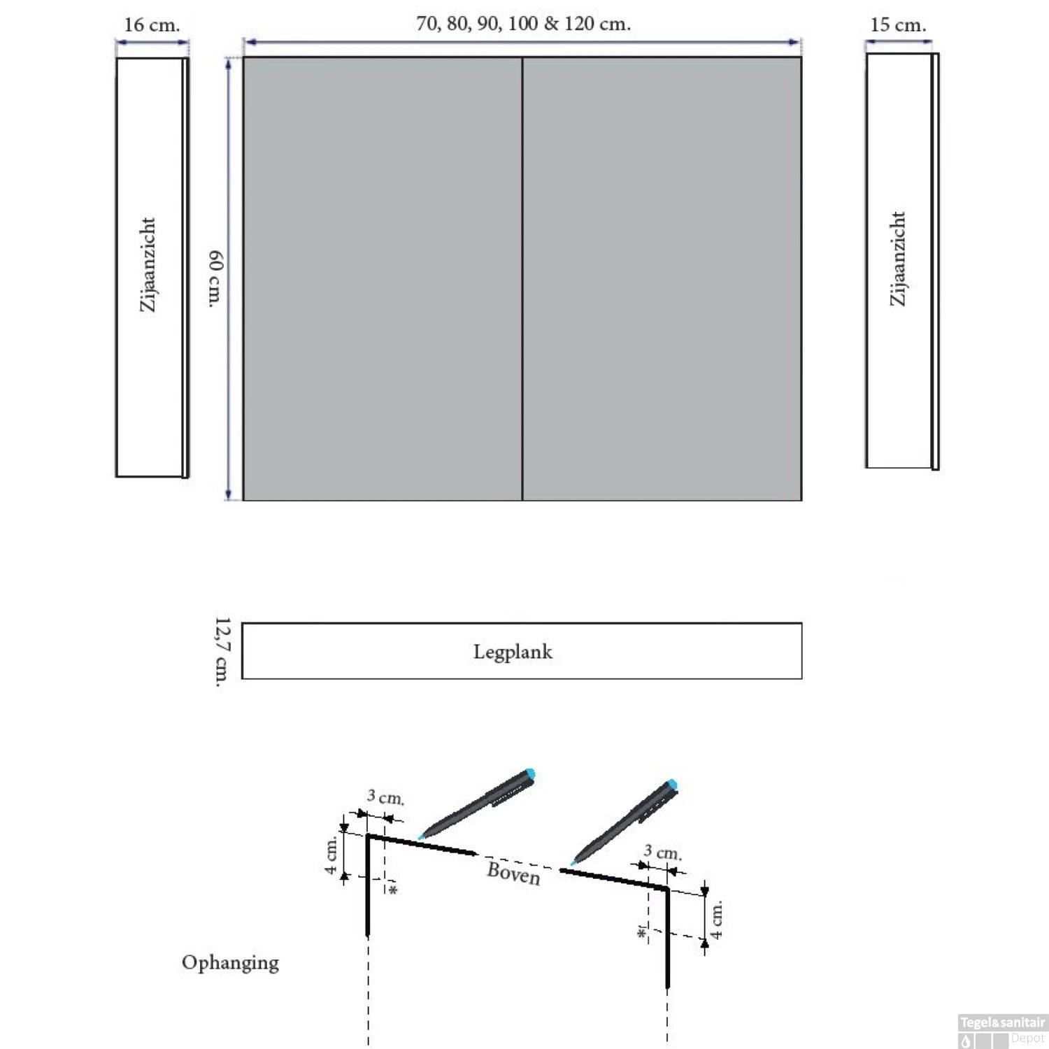 - Diepte: 15 cm