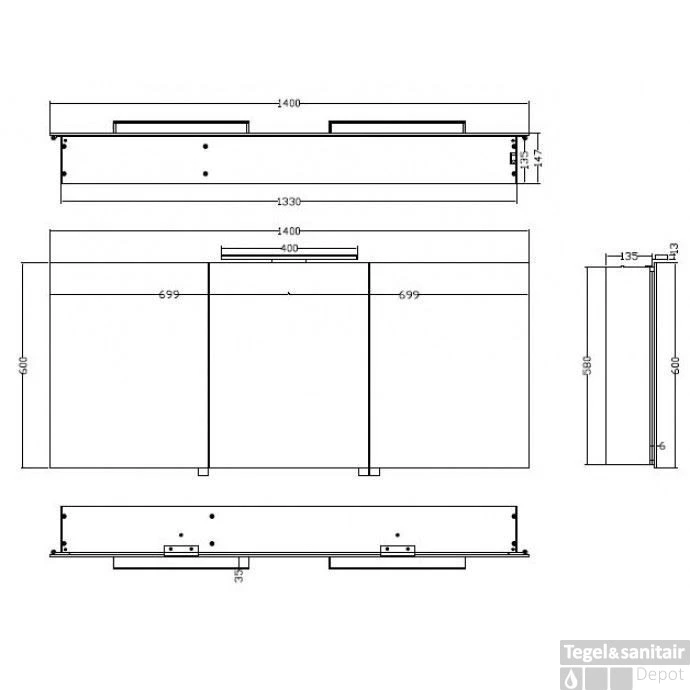Specificaties Spiegelkast Wiesbaden met Led Verlichting 140×60 Aluminium: