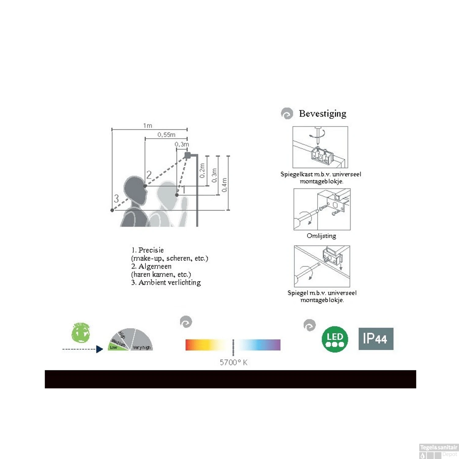 Bovendien kent deze moderne spiegellamp een beschermingsgraad van IP44: dat betekent dat de lamp spatwaterdicht is en dus perfect bestand is tegen vochtige omgevingen!