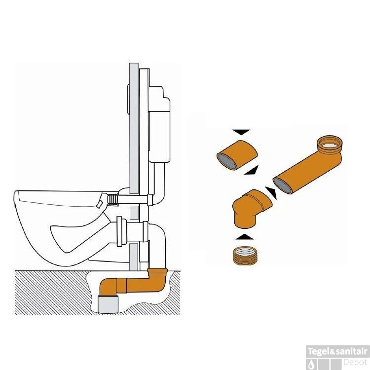 De Sprongbocht Wiesbaden 72mm ⌀ 9/11 verstelbaar 14.5 – 34.5cm is snel, eenvoudig en gemakkelijk in te korten. De sprongbocht is de ideale oplossing voor renovatie van toiletruimtes. Het hoeft u geen hoofdbrekens meer te kosten als de bestaande afvoer te ver van de wand zit, om er direct een inbouwreservoir op aan te sluiten. De nieuwe sprongbocht is bijzonder geschikt voor renovaties, met name wanneer het oude staande closet wordt vervangen door een wandcloset. In dat geval verbindt de sprongbocht de bestaande vloerafvoer moeiteloos met de afvoer van het inbouwreservoir.