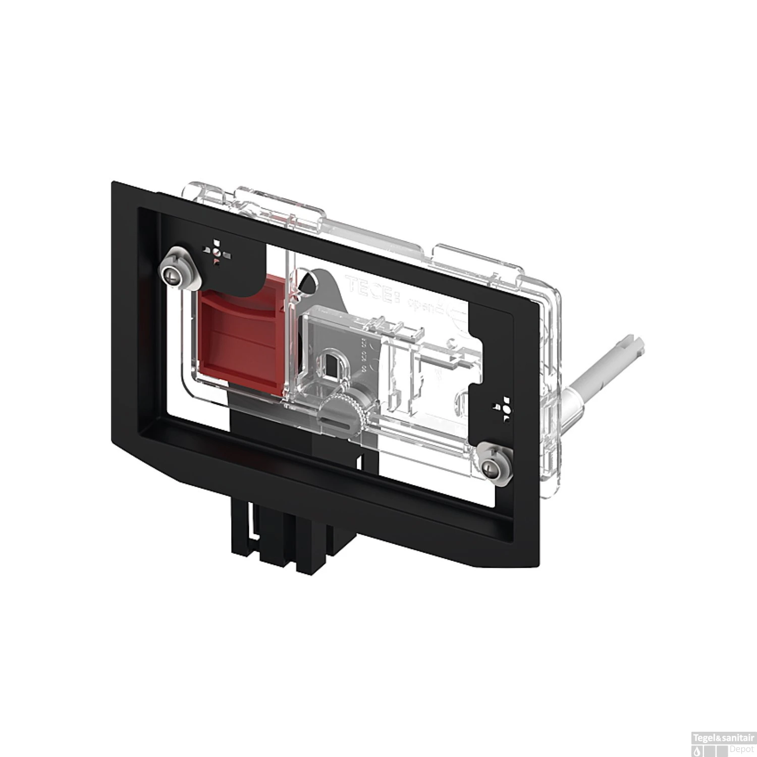Voor en achteraf te plaatsen voor alle spoelkasten en bedieningsplaten. Inworpschacht voor reinigingstabletten voor het inwerpen van reinigingstabletten in elke TECE-spoelkast, in combinatie met een TECE-bedieningsplaat of het TECElux- WC-inbouwframe.