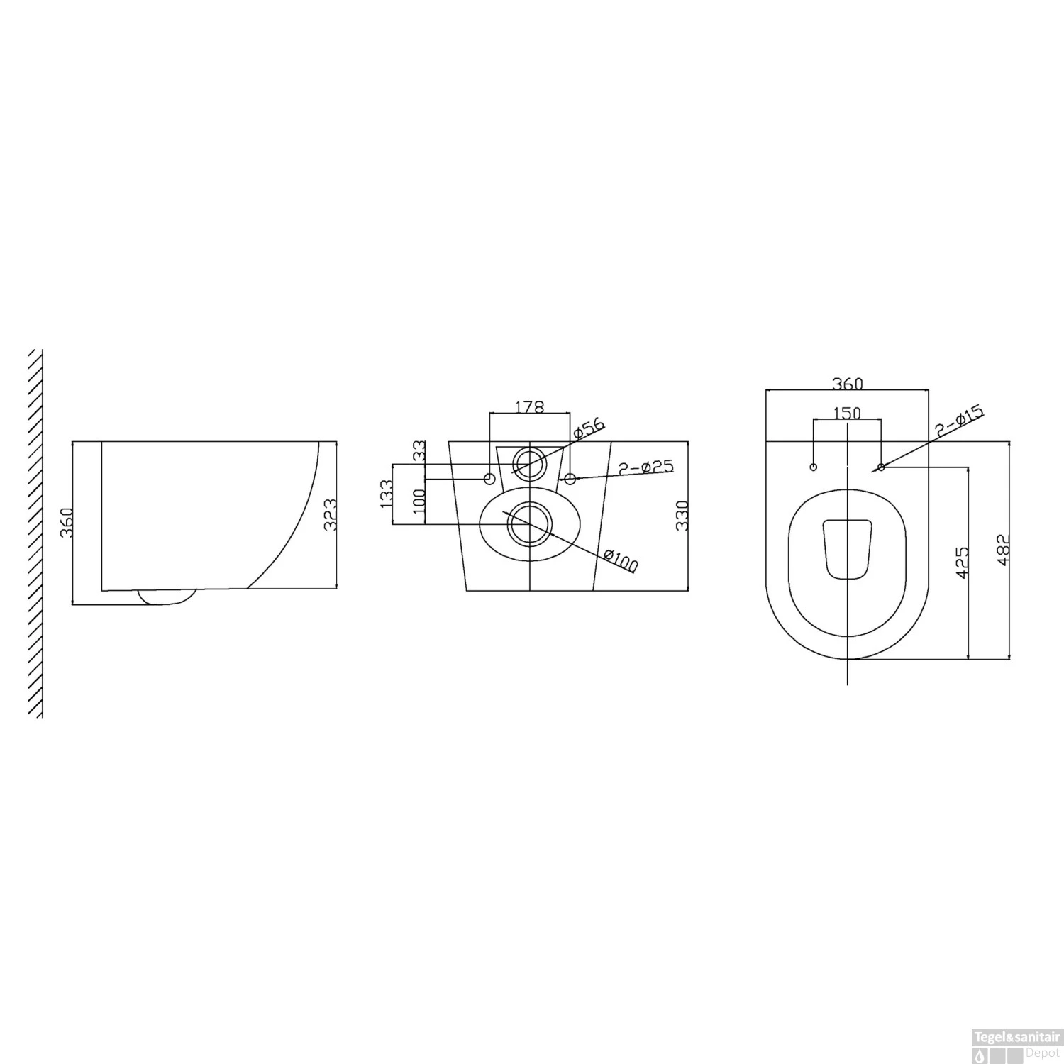 Het toilet heeft een ovale vorm met een breedte van 37cm. De hoogte van dit toilet is 36cm met een diepte van 48cm. Het toilet heeft een achter aansluiting (PK) en heeft een diepspoel spoelvorm.