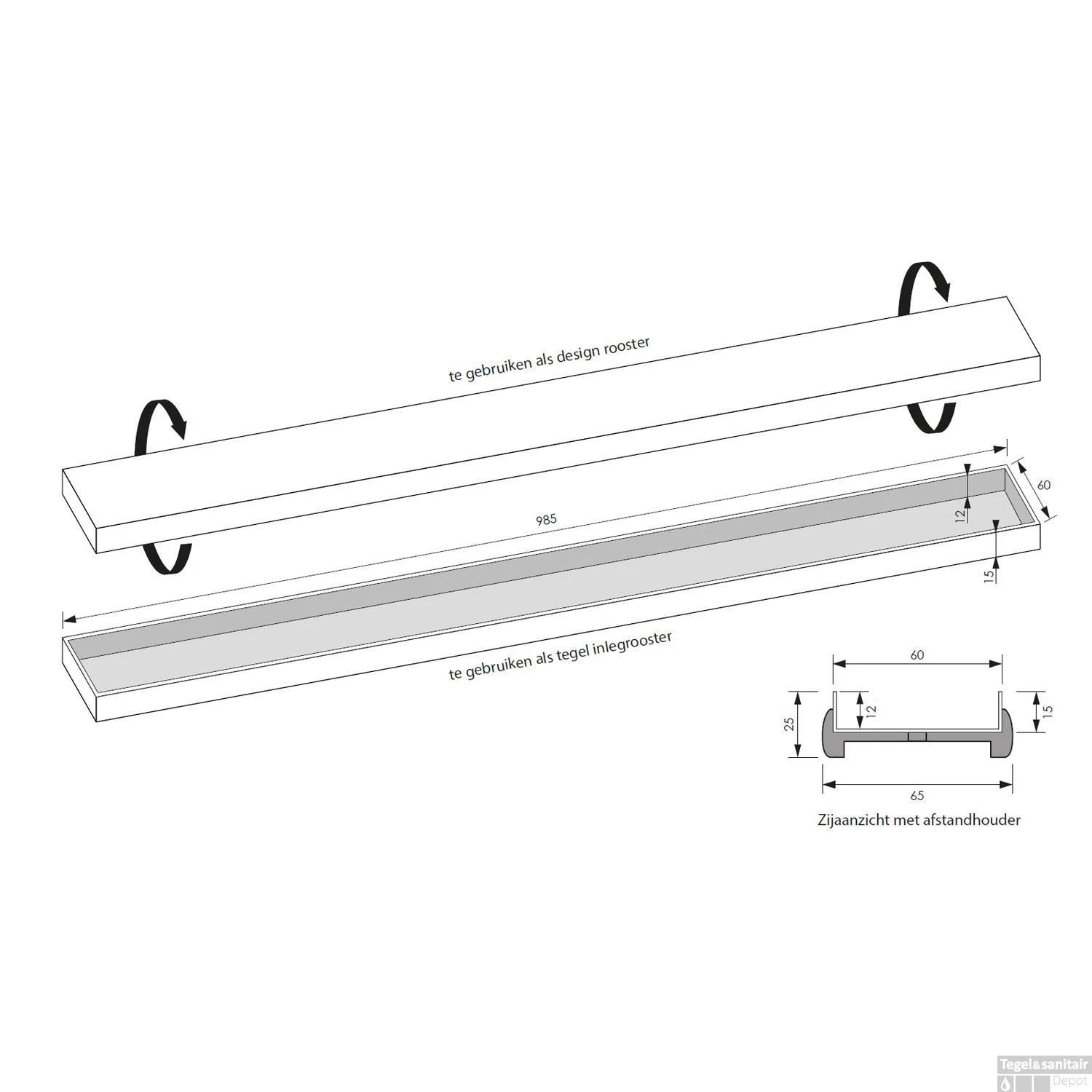 Een los tegelinlegrooster tbv de douchegoten van Brauer. Dit rooster is geschikt voor de douchegoot types STD/W/PS. De afmeting van het rooster is 100×7 en heeft de kleur van geborsteld gunmetal. Het rooster kunt u op twee verschillende manieren plaatsen. U kunt kiezen voor de Zero look, waarbij het rooster helemaal dicht is, of het tegelinlegrooster, waarbij u de douchegoot helemaal weg laat vallen tussen uw tegels. (Zie afbeeldingen)