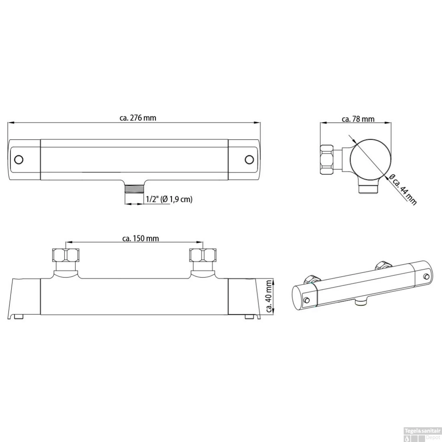 Specificaties Thermostatische Douchekraan Schutte Vita Chroom: