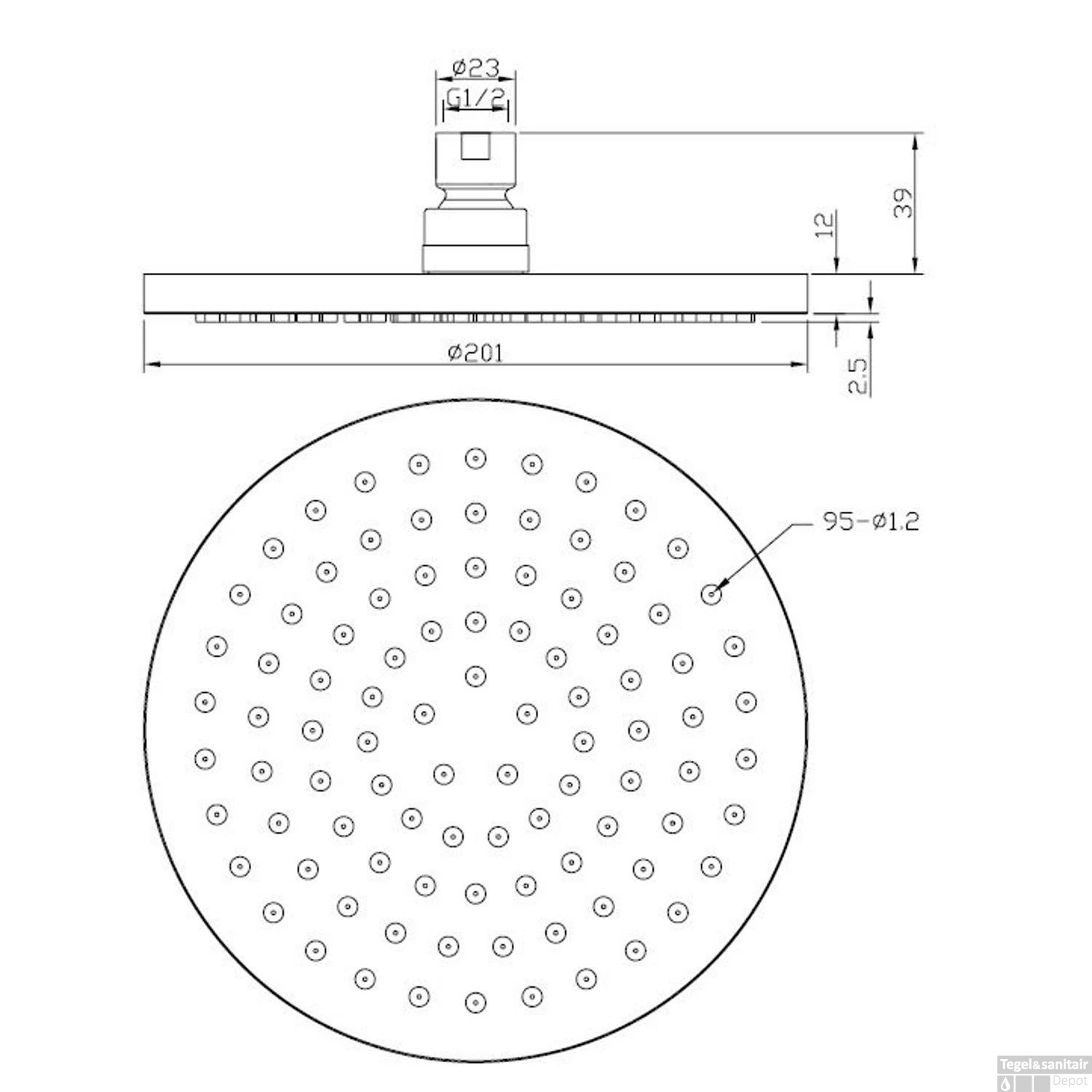 Specificaties Thermostatische Inbouw Regendouche Set Wandarm 20 cm Rond incl. Inbouwdeel Wiesbaden Type 102: