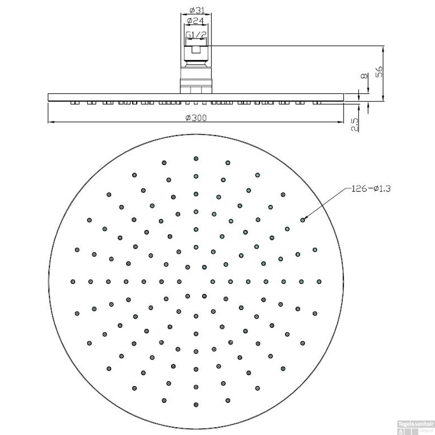 - – Douchekop rond 30 cm