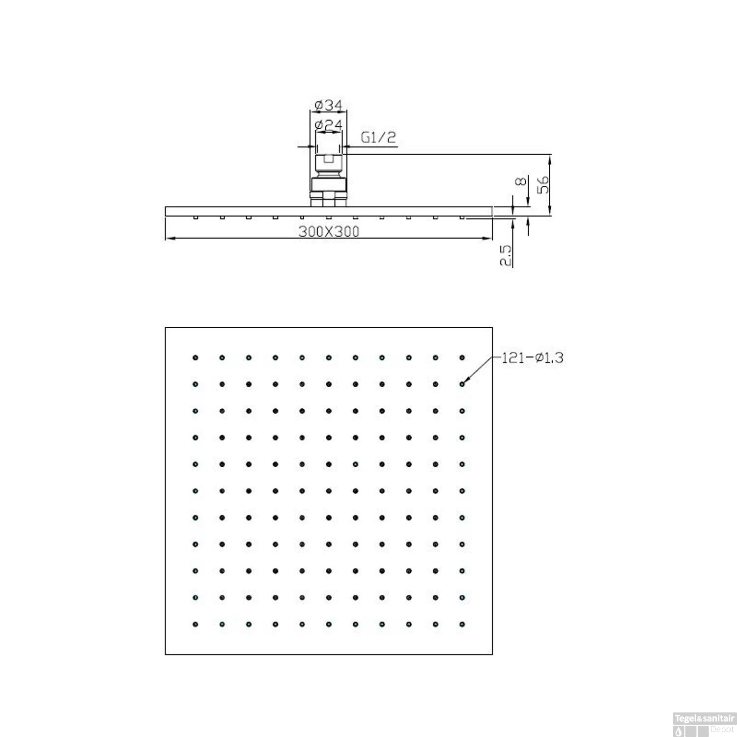 - – Douchekop vierkant 30 cm