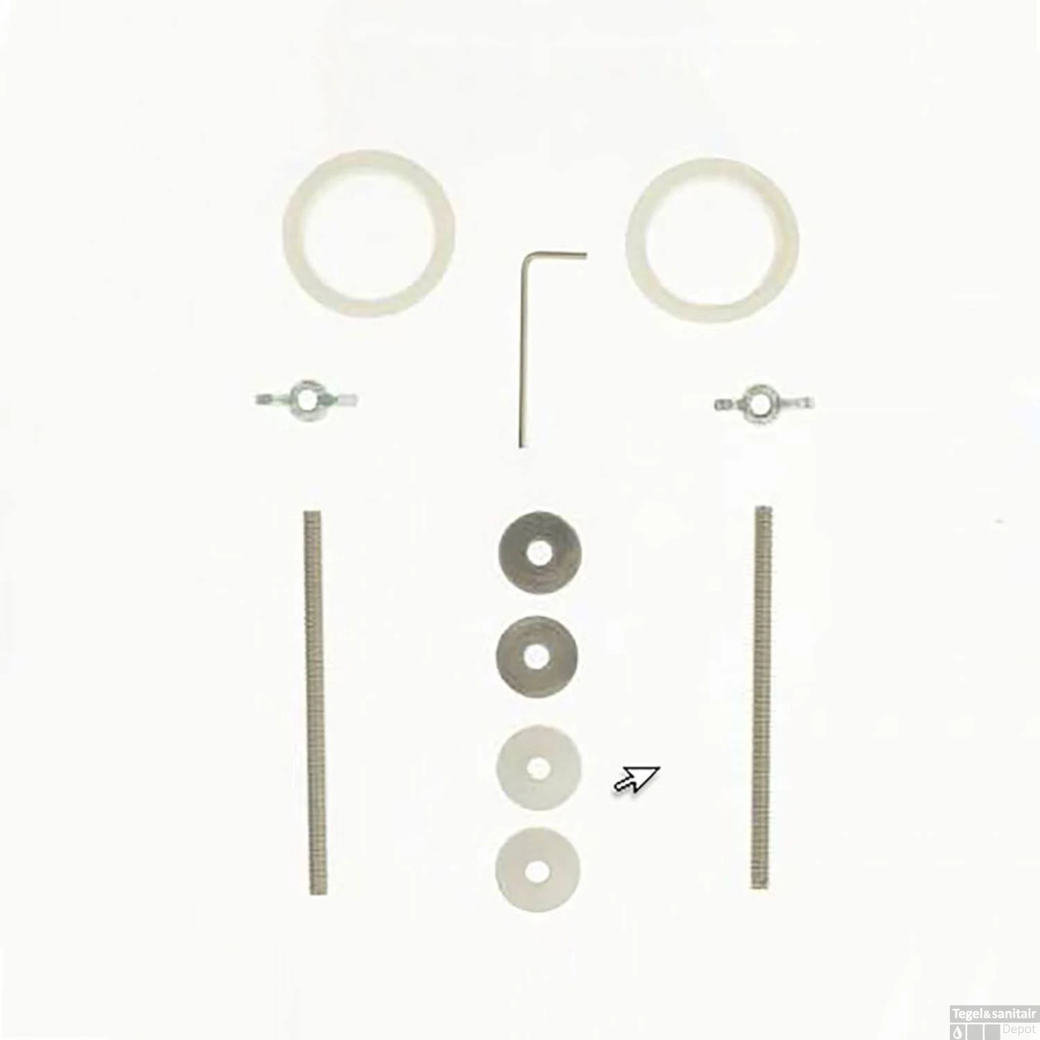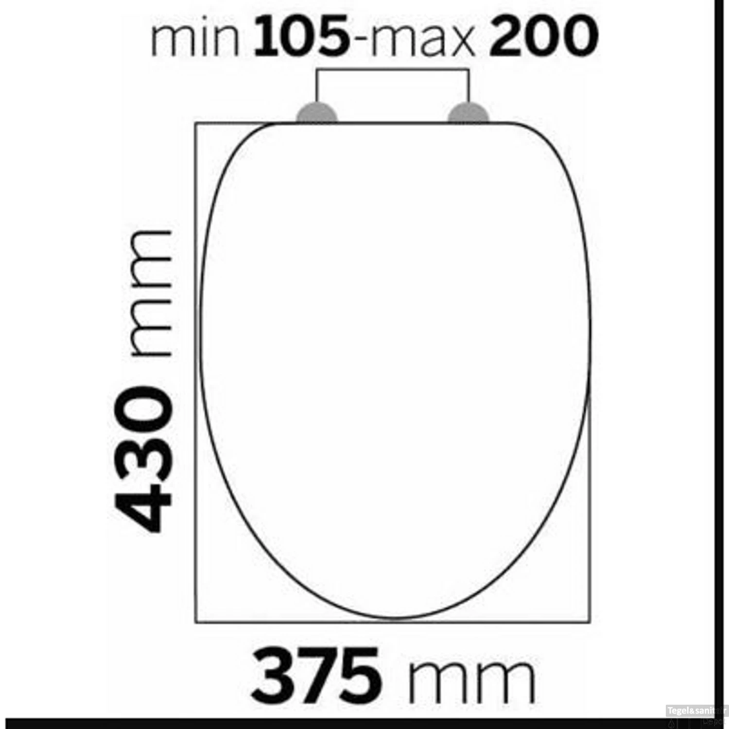 De toiletzitting wordt geleverd inclusief montagehandleiding en bevestigingset. De afmetingen zijn (b)37.5 cm x (d)43 cm x (h)5.2 cm en de HoH ophanging 10.5-20 cm.