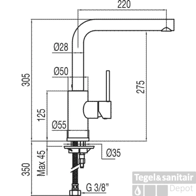 Lengte uitloop 220 mm