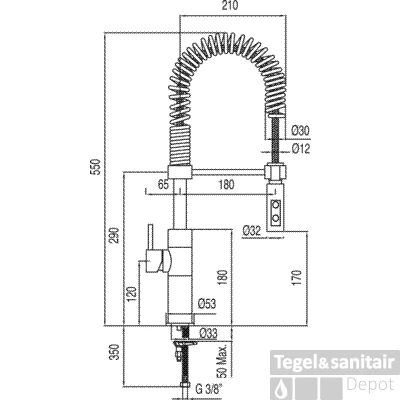 Lengte uitloop 210 mm