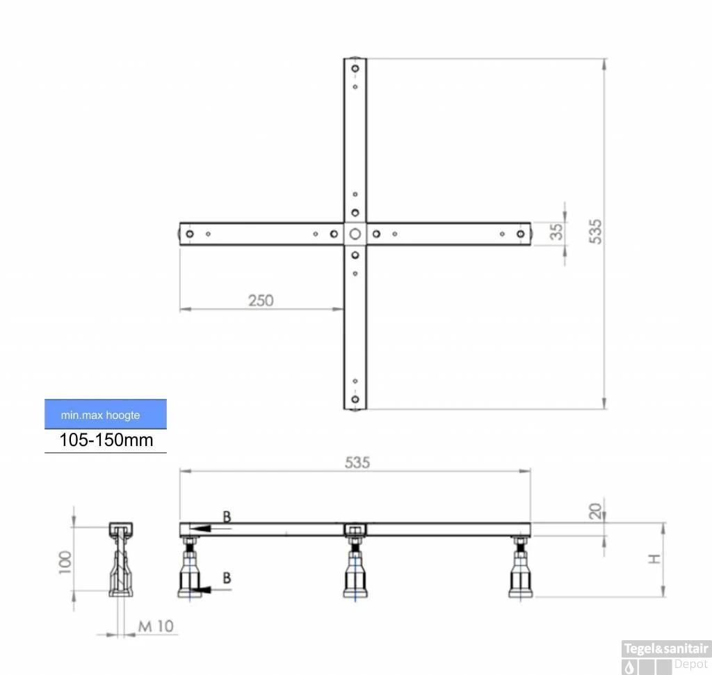 Deze douchebakpotenset zijn universeel toepasbaar op alle douchebakken. MEPA Douchebakpoten voor douchebakken van Staal en acryl. voor staal en acryl douchebakken van minimaal 75 x 75 cm tot maximaal 90×90 cm, 6 cm in hoogte verstelbare Schroef voet, in hoogte verstelbaar van 105 – 150 mm