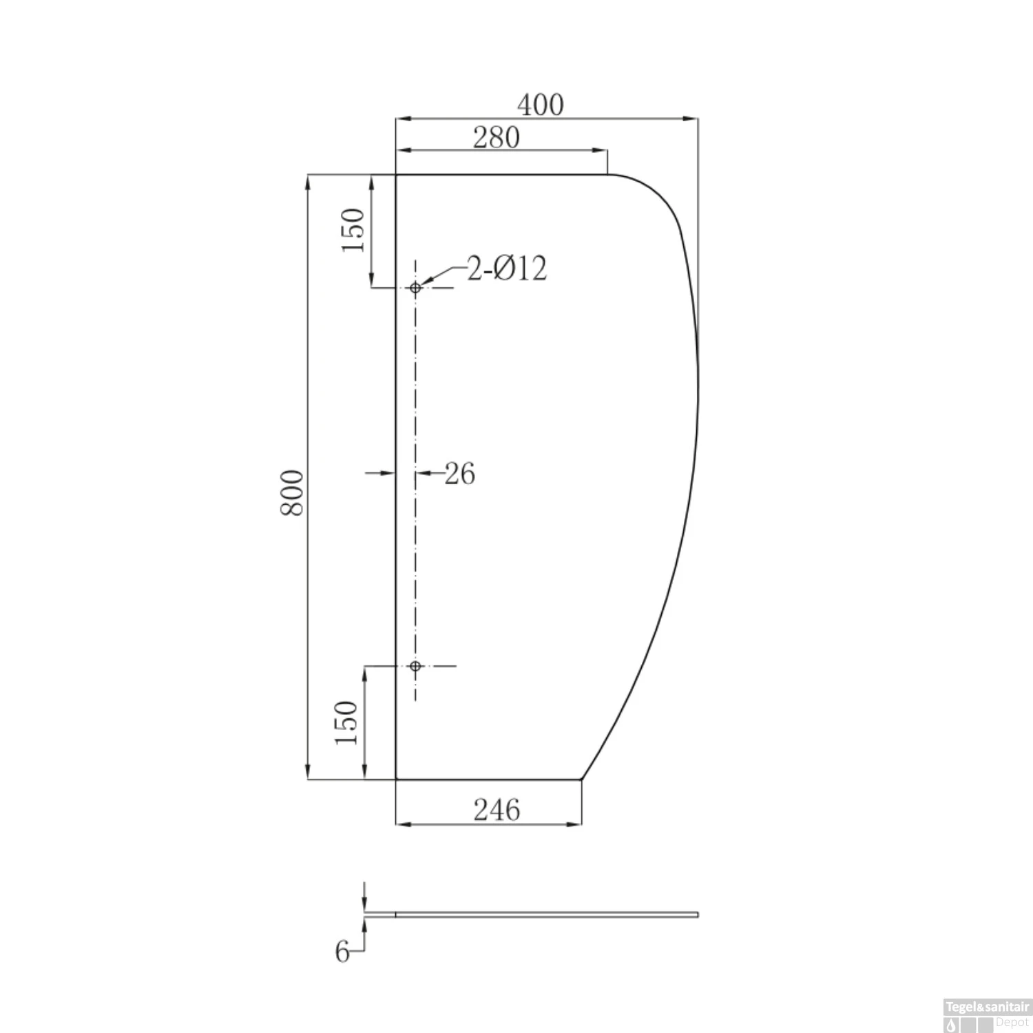 Specificaties Urinoirscherm Schaamschot 80×40 cm Gehard Glas Sapho: