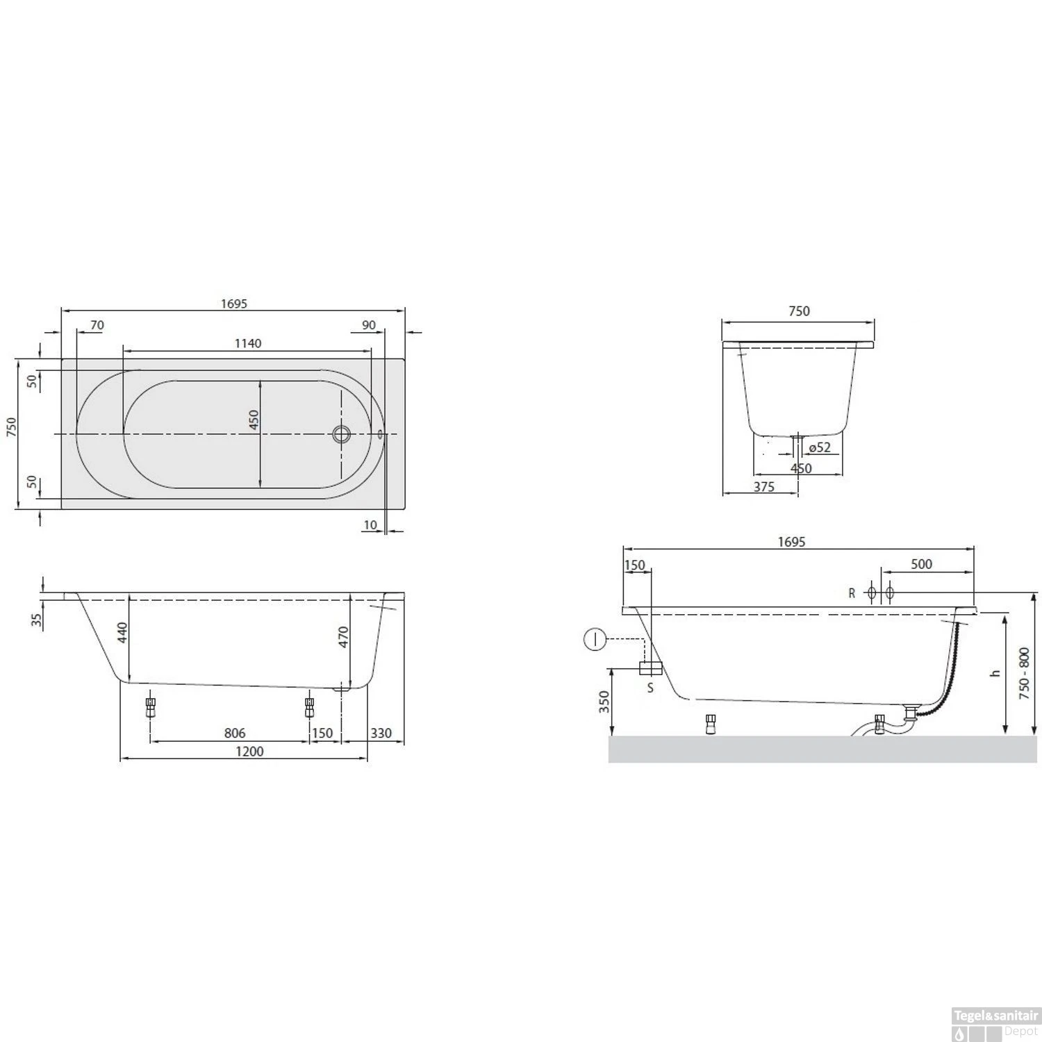 Specificaties Ligbad Villeroy & Boch Omnia Architectura 170×75 cm Wit: