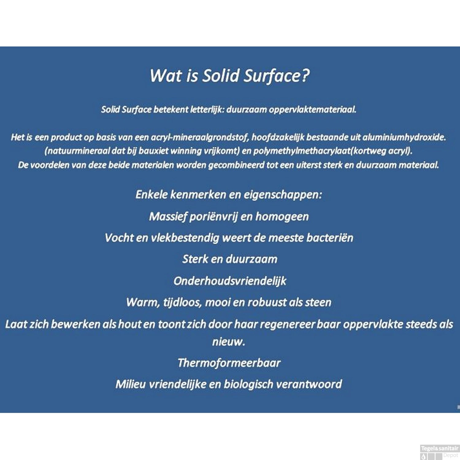 - – Materiaal: solid surface